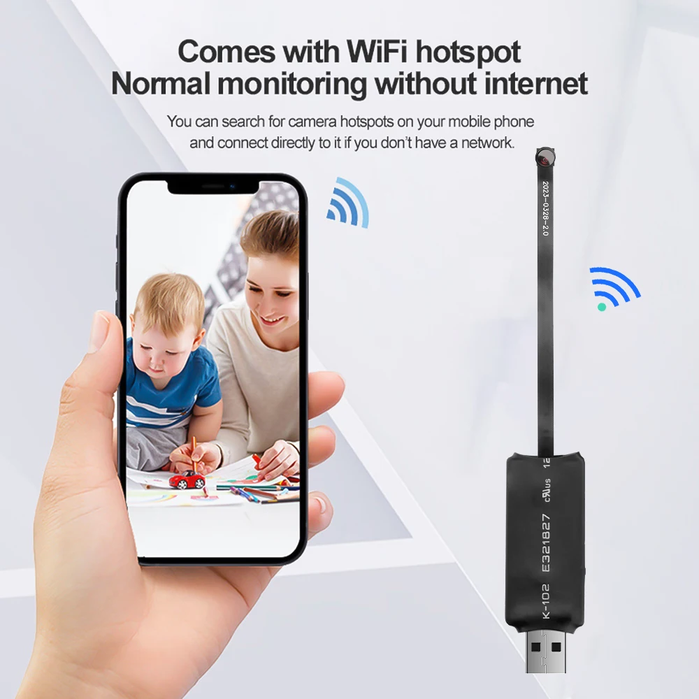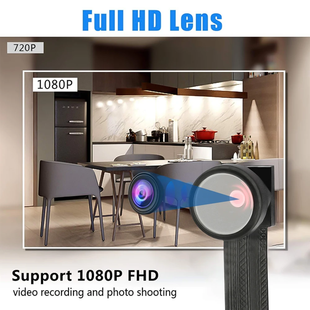 【Vista remota】 Conecte la mini cámara al WIFI de su enrutador y luego podrá acceder a su unidad de cámara de forma remota. Al usar la aplicación gratuita de la cámara, puede ver su casa/niños/mascotas/niñeras desde su teléfono móvil en cualquier momento y en cualquier lugar. Le permite transmitir en vivo desde cualquier lugar para capturar imágenes/videos súper claros de 1080p/30fps de su hogar/oficina/tienda o cualquier cosa que desee.
