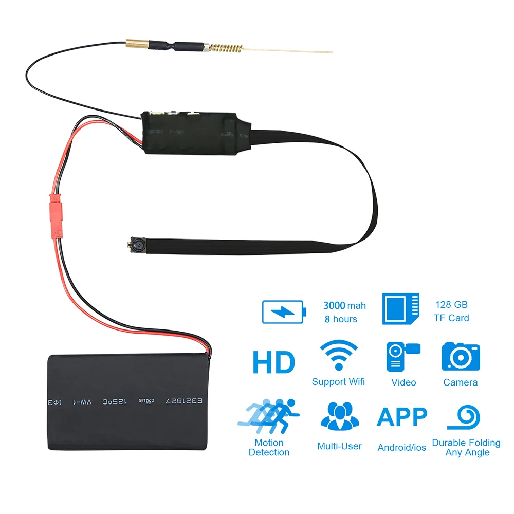 【Cámara de manual】 Este módulo de cámara está equipado con una mini lente HD, satisface completamente las necesidades de bricolaje. Esta cámara inalámbrica se puede utilizar como cámara de seguridad para vigilar su hogar u oficina.