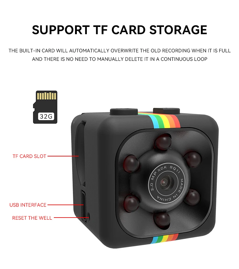 • Mini tamaño:El tamaño compacto de la cámara hace que sea fácil de transportar y ocultar en lugares discretos.