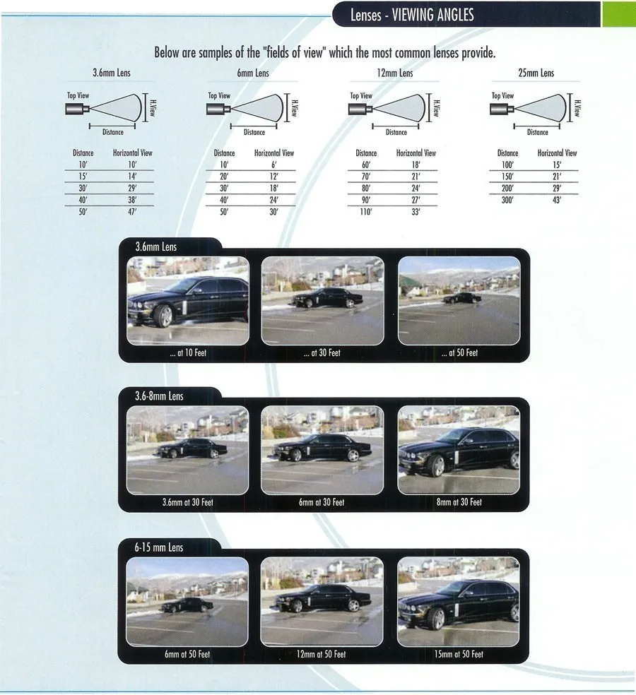La configuración estándar es una lente de 3,6 mm, de aproximadamente 90 grados.