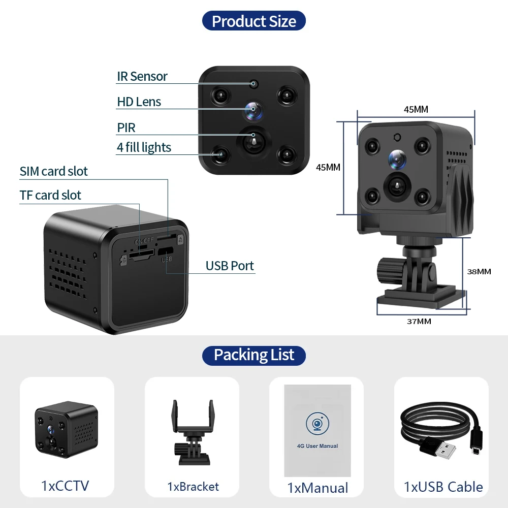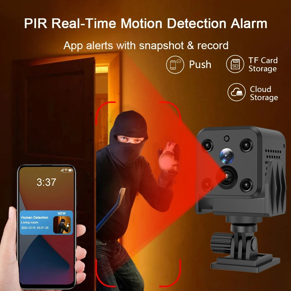 Comprar Minicámara de vigilancia de seguridad para el hogar, Monitor de bebé con visión nocturna IR, detección de movimiento PIR, batería integrada, 5MP, 4G