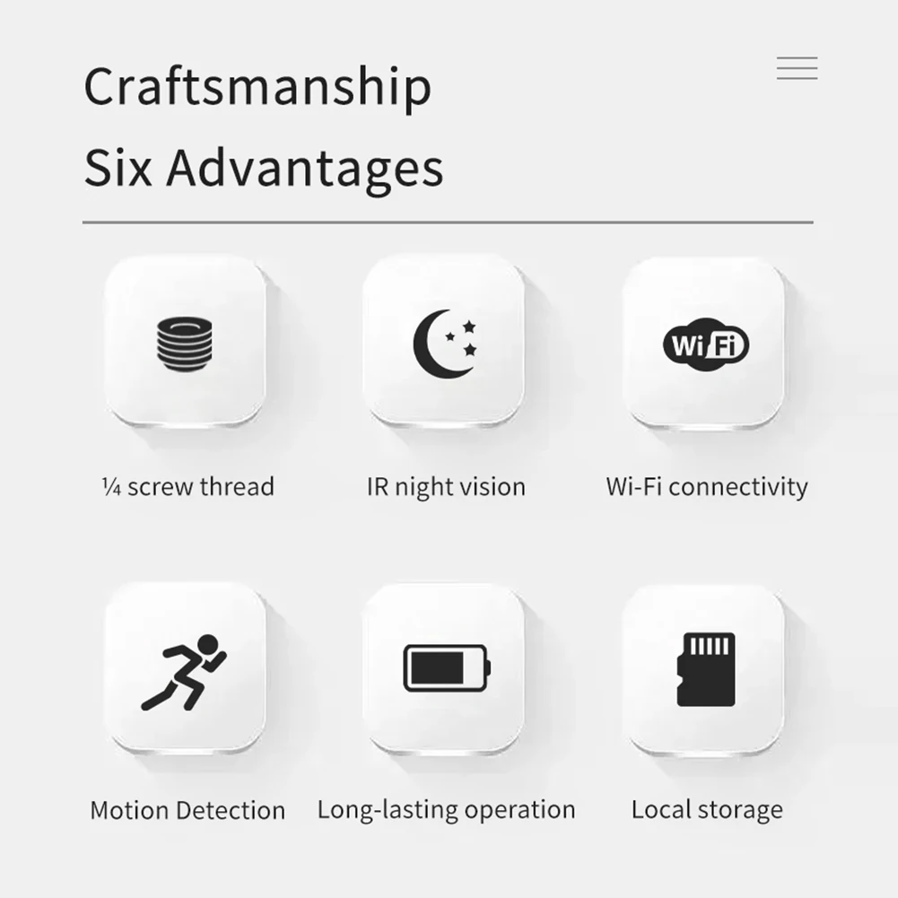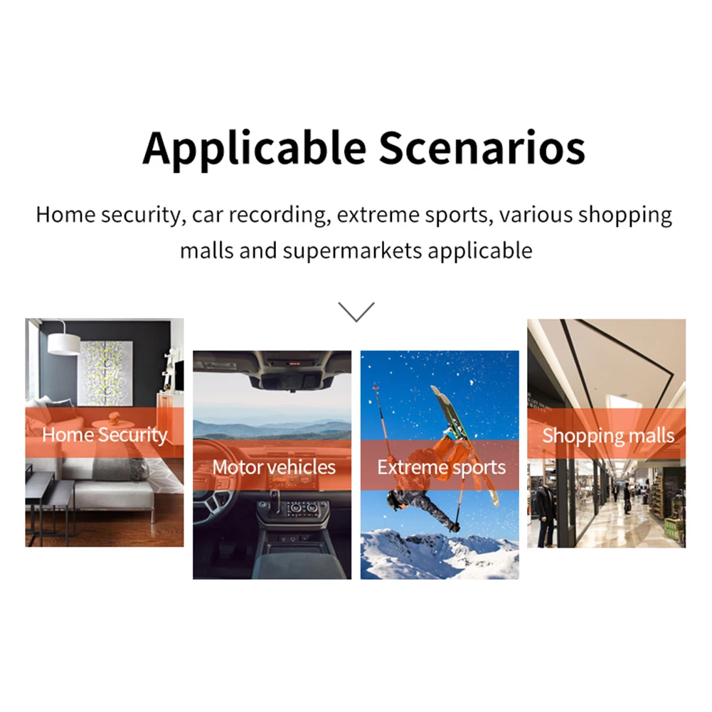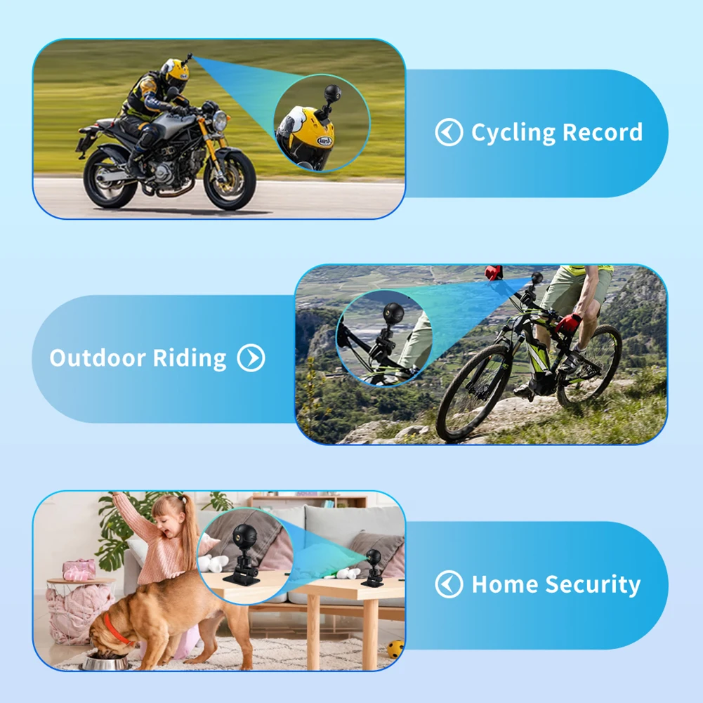 5. Amplia gama de aplicaciones:Ya sea para seguridad en el hogar, vigilancia de oficinas, locales comerciales, grabación de deportes extremos o uso de cámara de salpicadero, nuestra cámara de monitoreo inalámbrica de alta definición satisface todas sus necesidades. Con una conexión a Internet, puede ver la alimentación de la Cámara de la niñera en tiempo real desde cualquier lugar. Es una solución versátil para varios escenarios, que garantiza tranquilidad y seguridad. Con una Base roscada de 1/4 pulgadas, Esta cámara permite a los consumidores conectarla a cualquier soporte compatible, como palos de selfie, trípodes, soportes para dashcam, soportes para bicicletas o motocicletas, y más. El fuerte adhesivo en la base también permite una fijación segura a Paredes, escritorios, alféizares, cascos de seguridad y otras superficies.