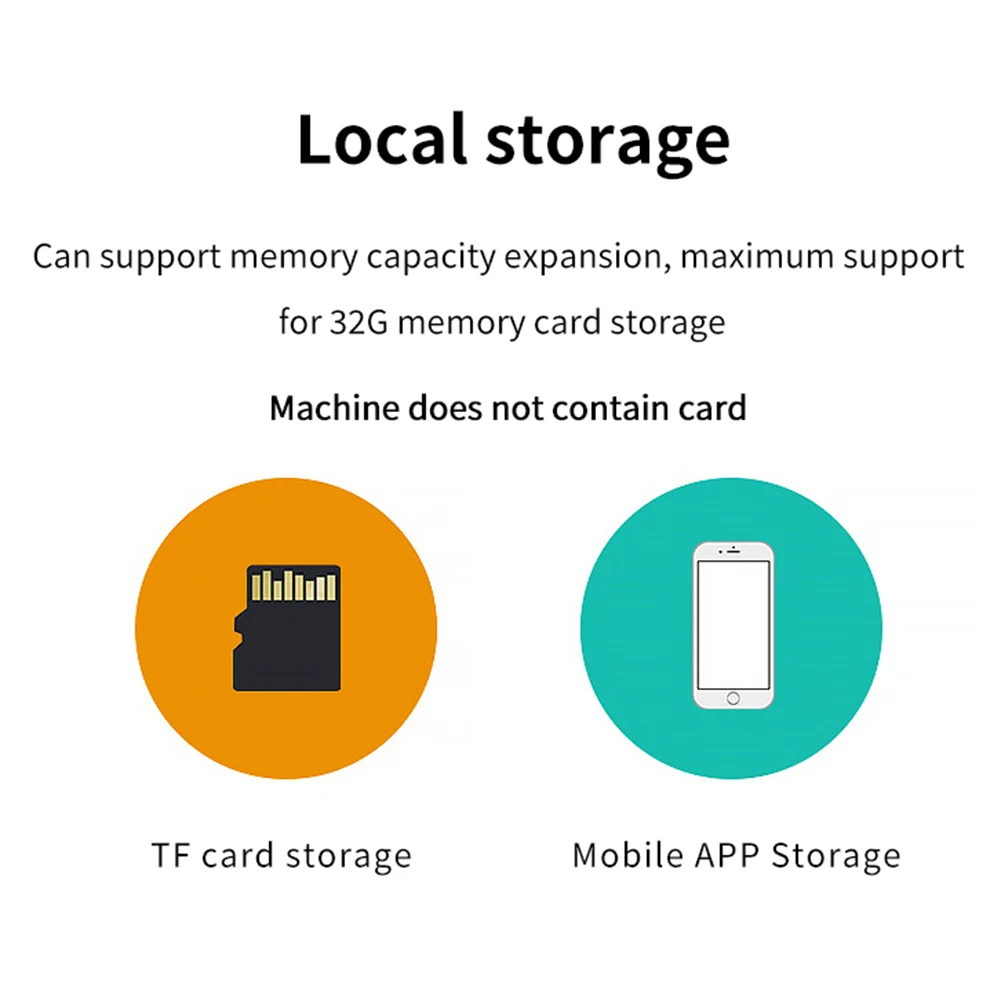 4. Opciones de almacenamiento versátiles:La cámara de vigilancia admite varios métodos de almacenamiento, incluido el almacenamiento local con soporte de tarjeta TF expandible de hasta 32GB (tarjeta no incluida) y almacenamiento de aplicaciones móviles. Simplemente conecte su teléfono a un punto de acceso WiFi para ver y reproducir grabaciones en tiempo real, con grabación continua que garantiza una funcionalidad continua. Cuando la tarjeta de almacenamiento está llena, los archivos más recientes sobrescriben los más antiguos, lo que garantiza que nunca se pierda momentos cruciales.