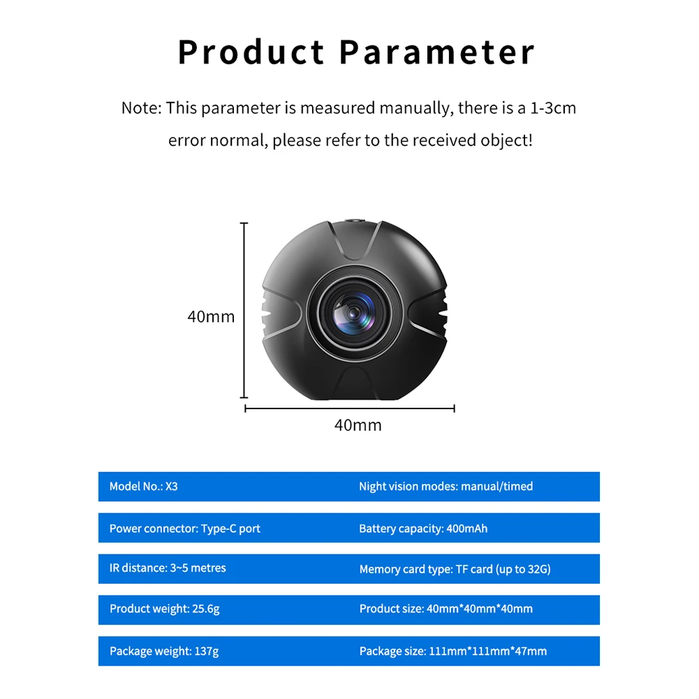 1. Imágenes de alta definición:Esta mini cámara cuenta con una lente de alta definición capaz de capturar cada detalle con una calidad de imagen excepcional. Equipado con tecnología infrarroja, cambia sin problemas al modo infrarrojo en condiciones de poca luz, lo que garantiza un vídeo claro y de alta definición incluso en entornos oscuros.