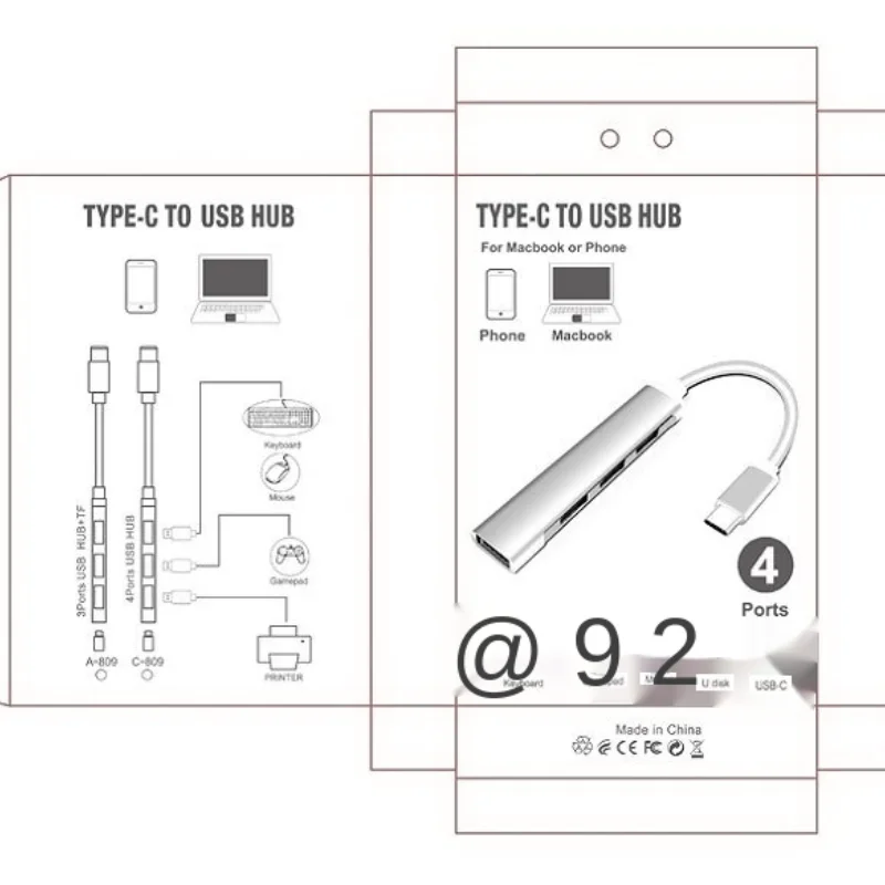 Modelo privado Mini tipo C Hub USB 3,0 Hub Splitter One Drag cuatro tipo C estación de acoplamiento plateado Multi System Drive gratis
