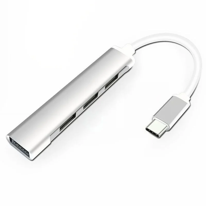 Miniconcentrador de red tipo C, modelo privado, USB 3,0, Splitter, un solo arrastre, estación de acoplamiento de cuatro tipos C, unidad multisistema plateado