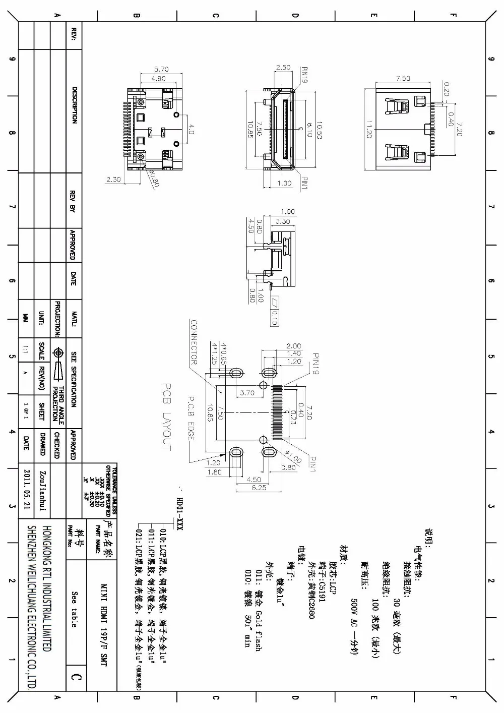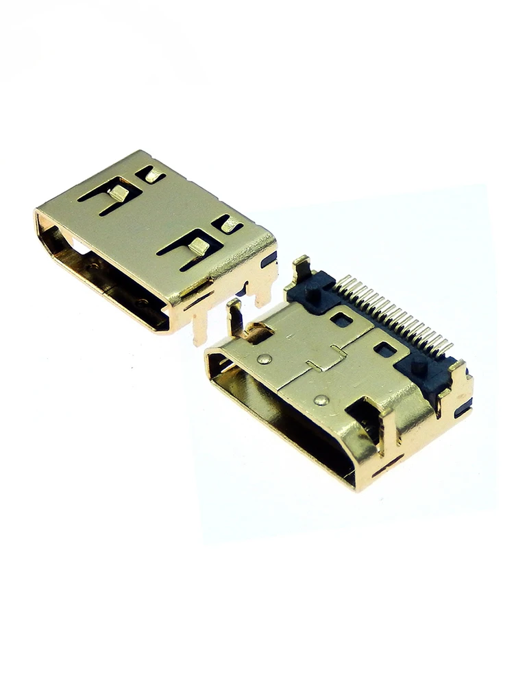 Comprar Miniconector hembra compatible con HDMI, SMD, 19 pines, soldador por reflujo, ángulo recto, superficie redonda, PCB, receptáculo Rohs, 10 piezas