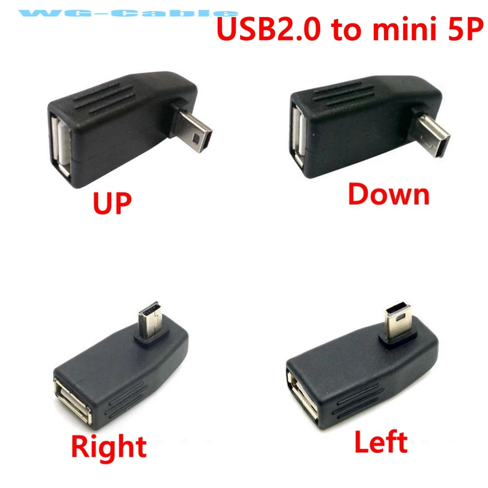 Comprar Miniconector USB en ángulo, adaptador OTG de 90 grados, macho A hembra, 5 pines