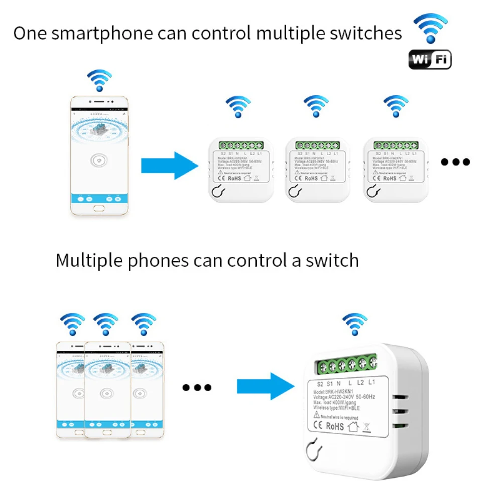 -Comparta este interruptor inteligente con su familia para compartir la comodidad juntos. Admite Teléfono para controlar dispositivos o teléfonos para controlar dispositivos.