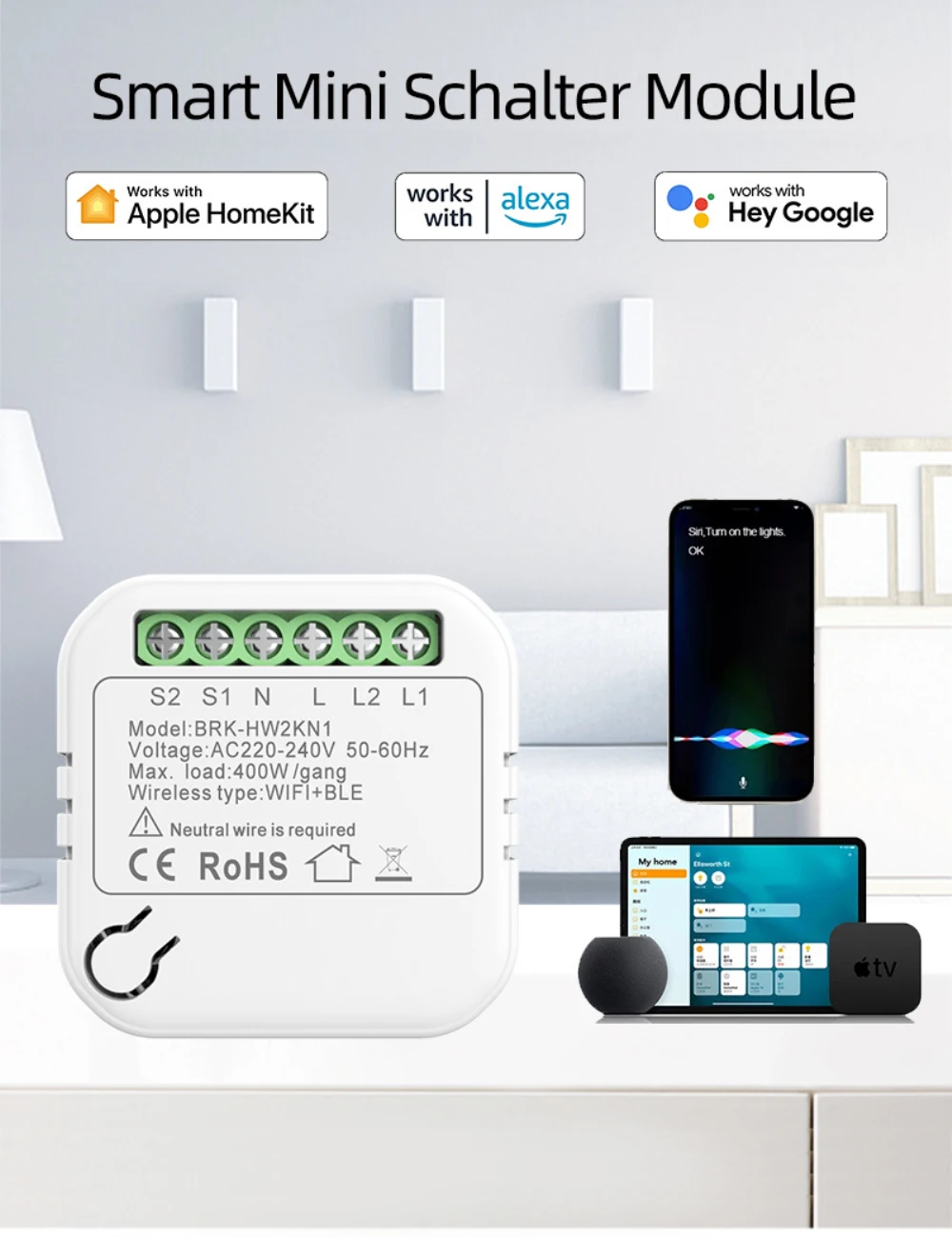 Compatible: Homekit/Alexa/ Home/AliGenie