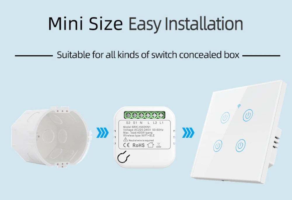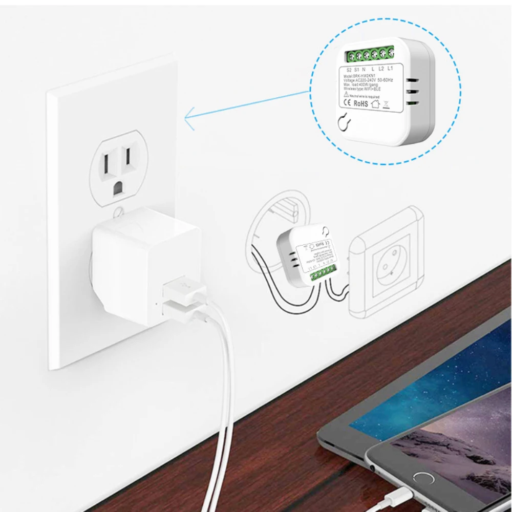 Interruptor WiFi inteligente, mini disyuntor inteligente, módulo de Kit para el hogar inteligente, Control de voz, Homekit/Alexa/ Homepage/AliGenie
