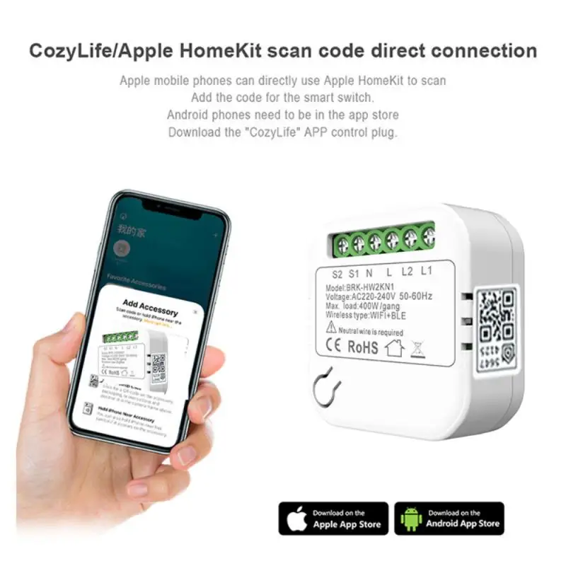 Interruptor WiFi inteligente, mini disyuntor inteligente, módulo de Kit para el hogar inteligente, Control de voz, Homekit/Alexa/ Homepage/AliGenie