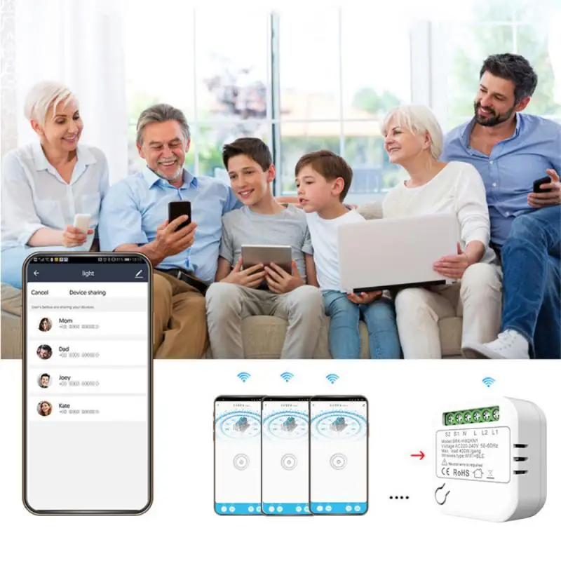 -Comparta este interruptor inteligente con su familia para compartir la comodidad juntos. Admite Teléfono para controlar dispositivos o teléfonos para controlar dispositivos.