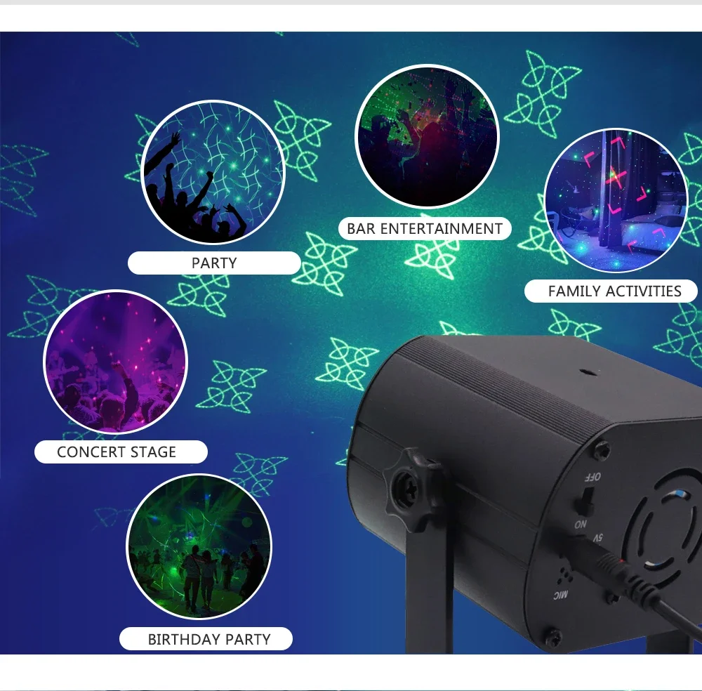 * Las luces láser con láser rojo y verde son adecuadas para ocasiones muy felices, como bodas, cumpleaños, fiestas, fiestas de Halloween, fiestas nuevas, discotecas, bailes, fiestas de Navidad, fiestas en la piscina, vacaciones, etc.