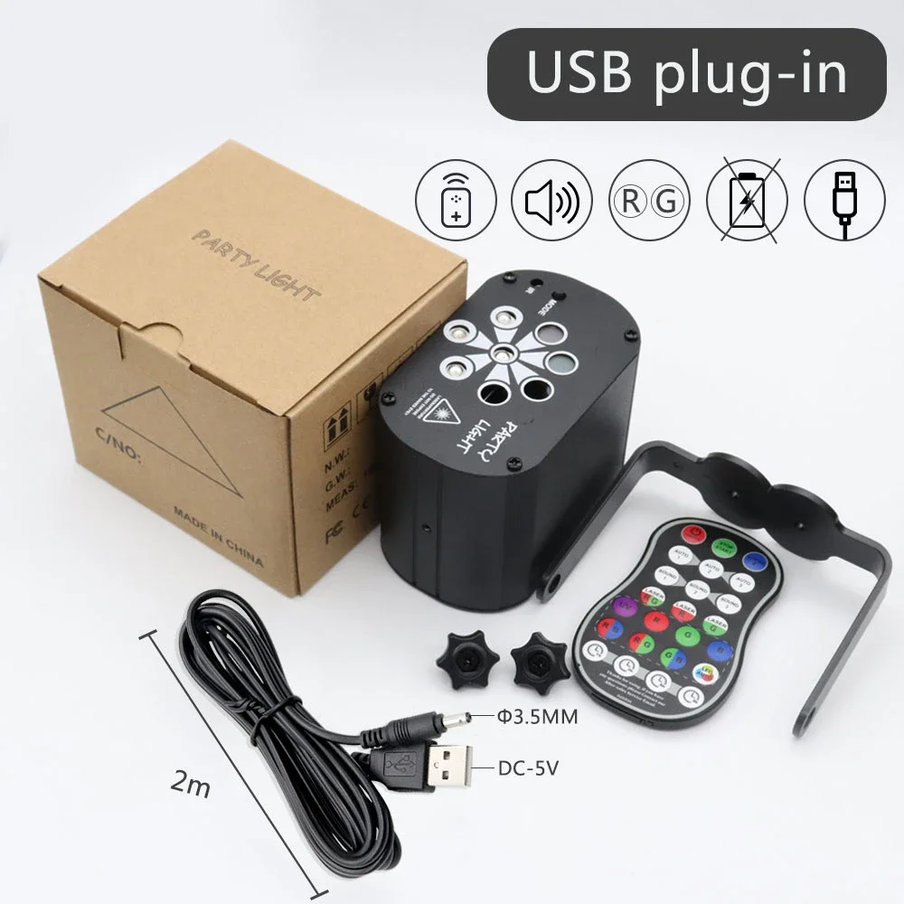 1 * mini Luz de escenario láser1 * Control remoto (sin batería)1 * Cable USB1 * accesorios (paquete)1 * Manual de usuario(No incluye batería incorporada)Paquete B:USB con batería
