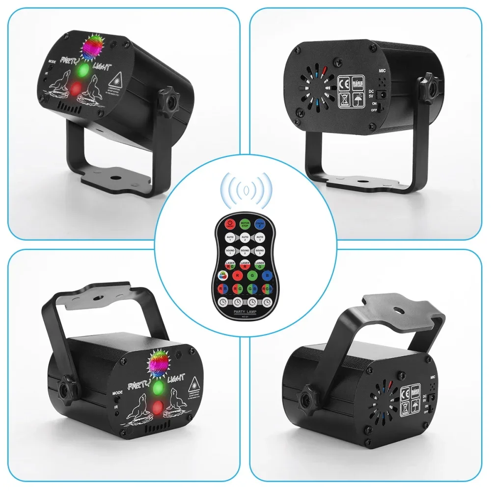 1 * Control remoto (con batería)1 * Cable USB1 * accesorios (paquete)1 * Manual de usuarioNota:1. Tenga cuidado de no mirar directamente a la apertura del láser para evitar lesiones en los ojos.2. Esta unidad es solo para uso en interiores y debe protegerse del agua, la humedad y las sacudidas.