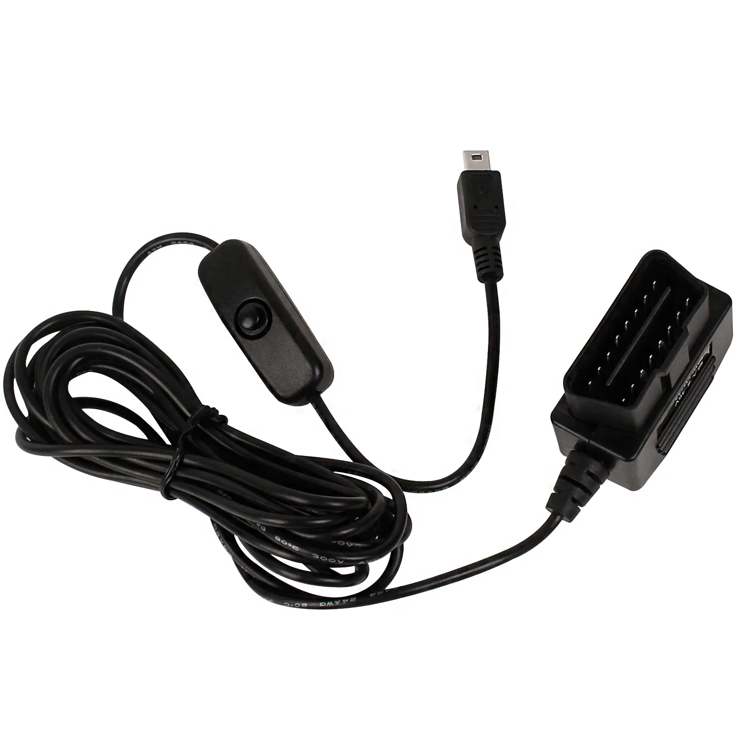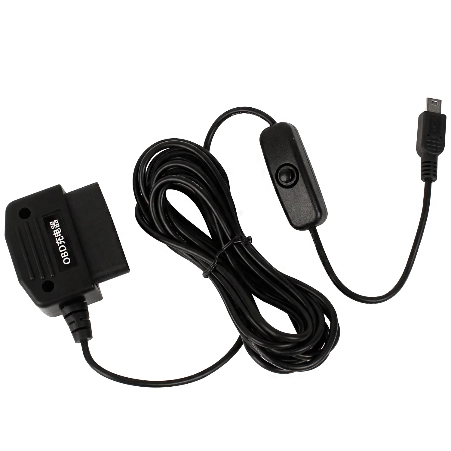 Comprar Minipuertos USB de salida para coche, adaptador de cigarrillos OBD, caja de alimentación con Cable de 3,5 metros, interruptor de línea para carga DVR, 5V, 2A