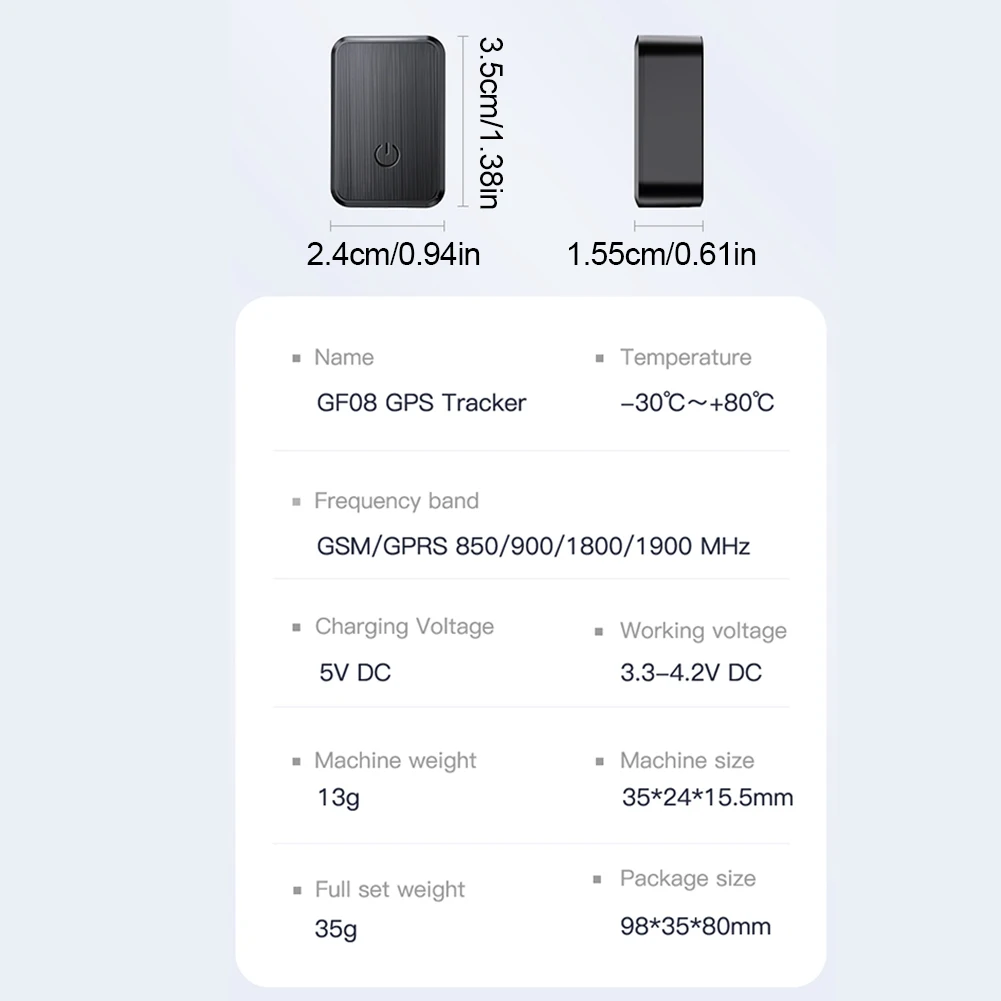 Comprar Minirastreador GPS para coche, dispositivo localizador de antipérdida GF-08, grabación de seguimiento en tiempo Real del vehículo, montaje magnético, posicionador de mensajes SIM