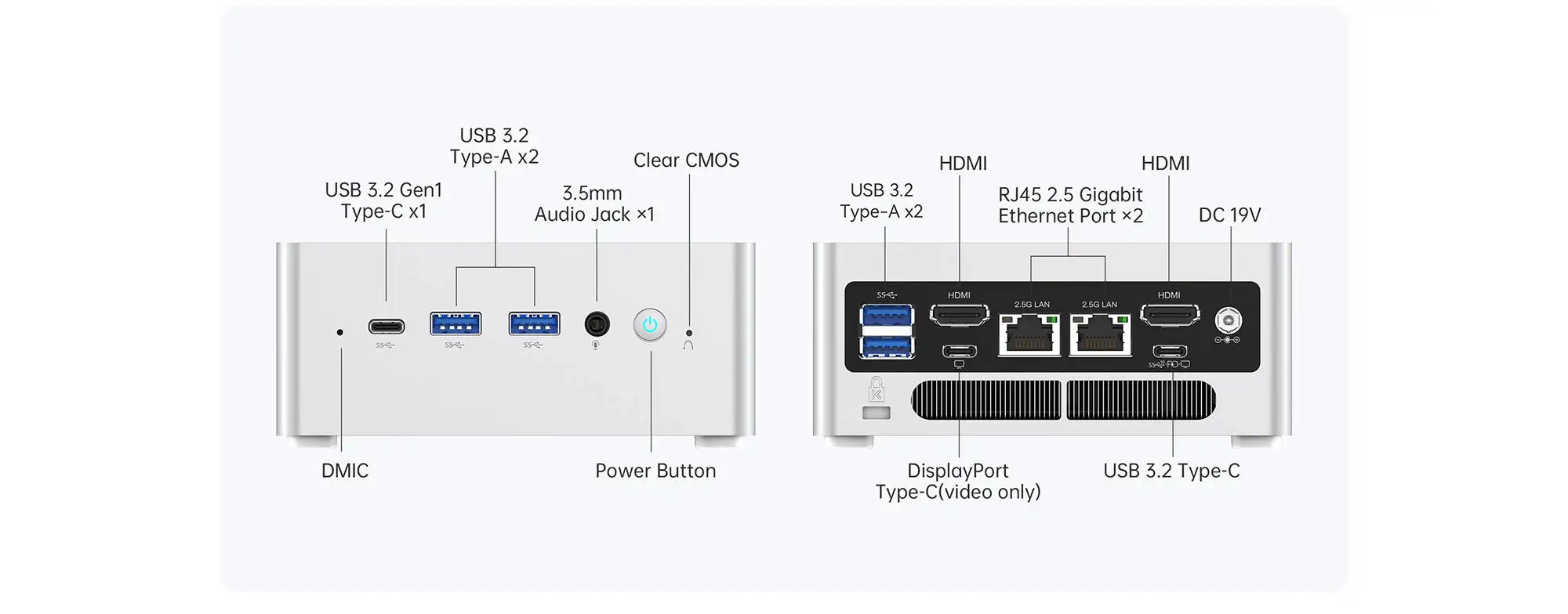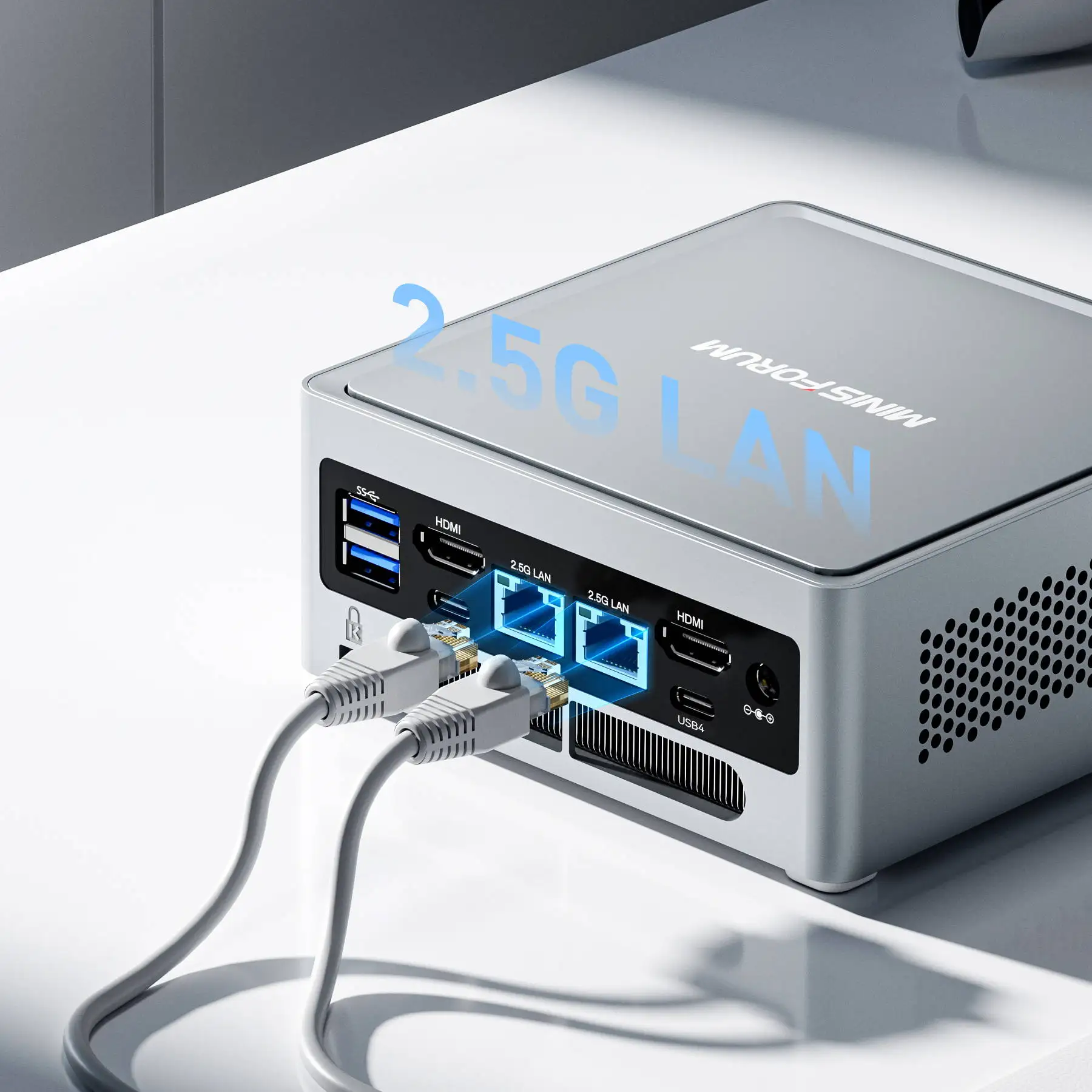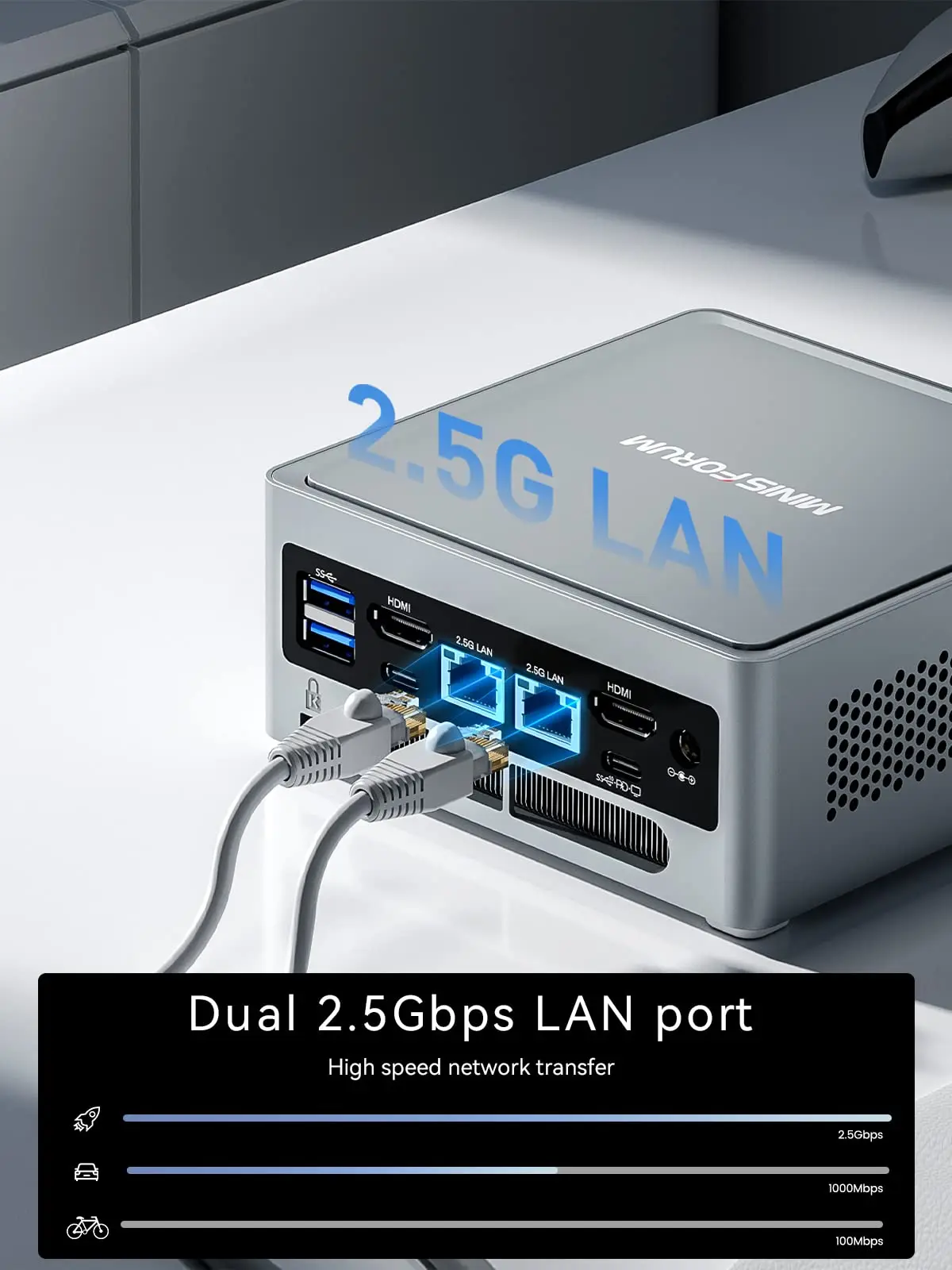 MINISFORUM NAB6 Lite small pc with two 2.5 Gigabit Ethernet(Intel i226v) ports provides more applications, such as firewalls, multichannel aggregation, file storage servers, etc. At the same time, dual-band Wi-Fi6, BT5.2 with more substantial resisting disturbance and more stable wireless signal. No matter how complicated your environment, NAB6 Lite mini desktop computers can provide a relatively stable and smooth network.