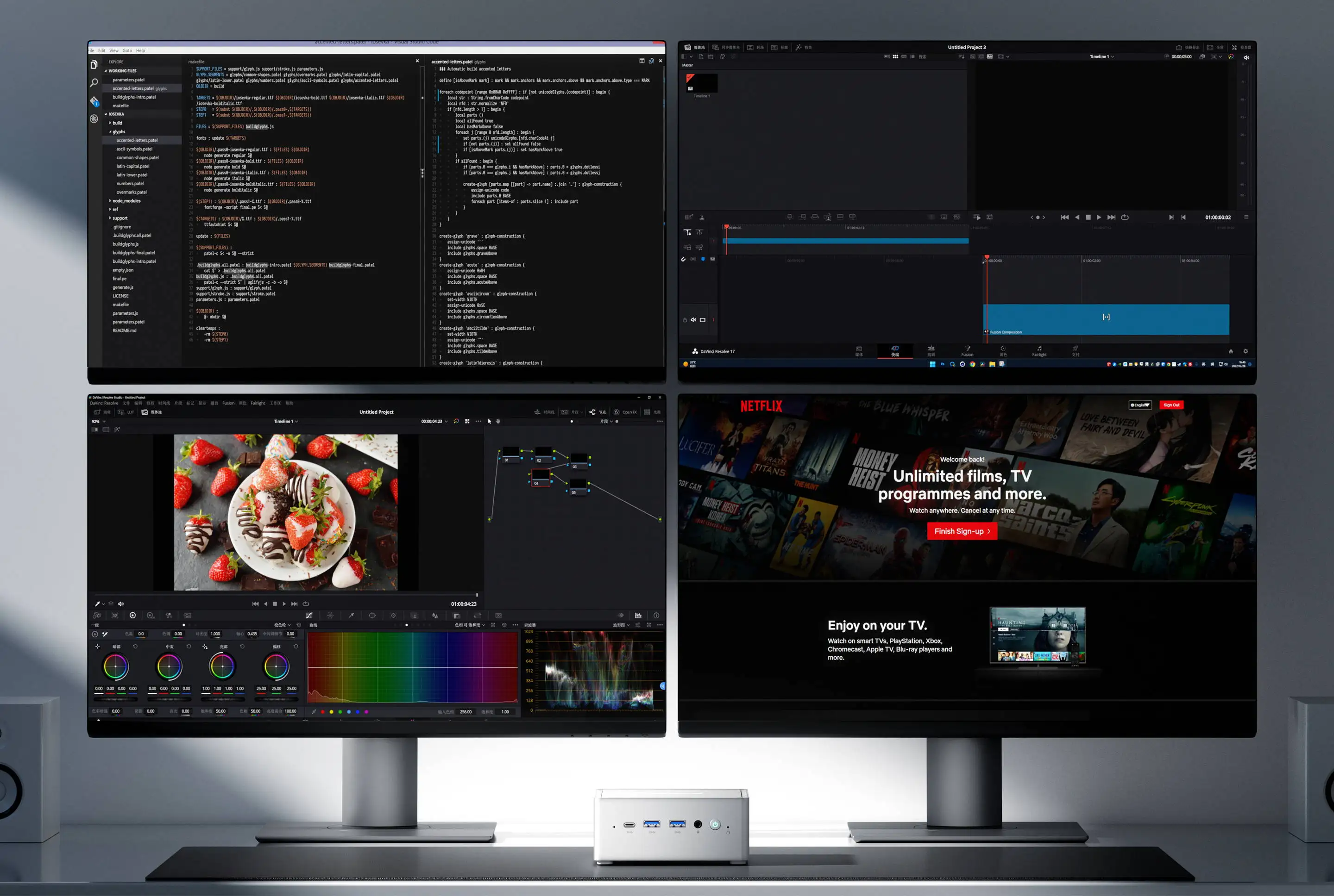 The Mini PC comes with a 4K@60Hz ultra-high-definition Intel UHD Graphics to enjoy a high-quality visual experience. 2* HDMI ports and 2*USB-C support 4K four-screen output, and can connect four monitors at the same time which can provide incredible clarity and maximum work efficiency.