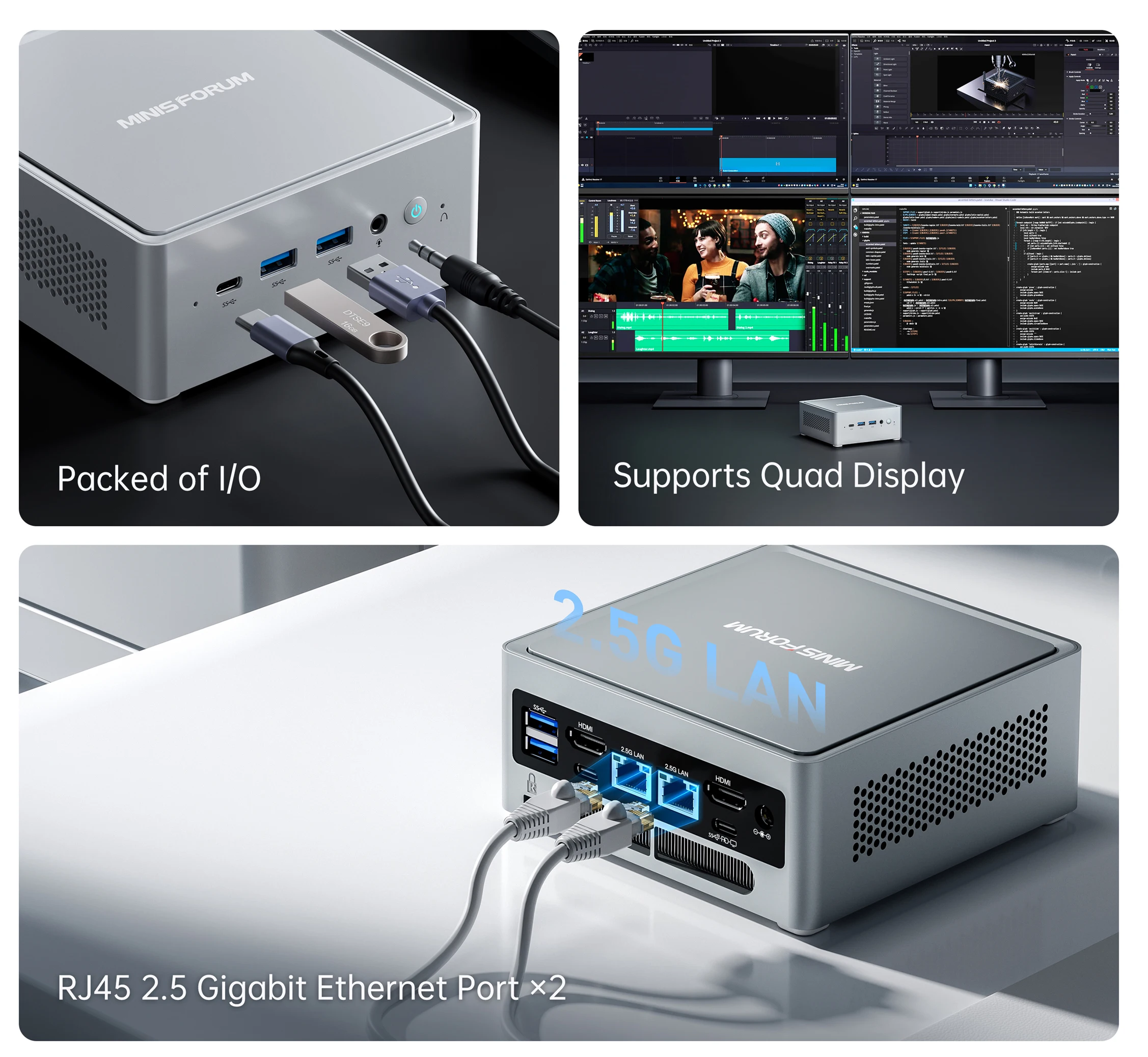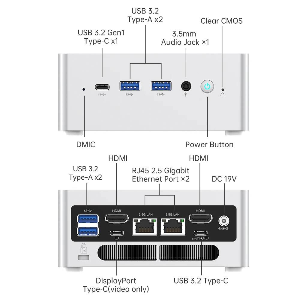 El NAB6 incluye tres puertos USB3.2, tres puertos, dos puertos HDMI y dos puertos Ethernet de 2,5 Gbps en su pequeño cuerpo. El potente Puerto admite pantallas 4K @ 60Hz, transferencia rápida de datos y entrega de energía 5V3A.