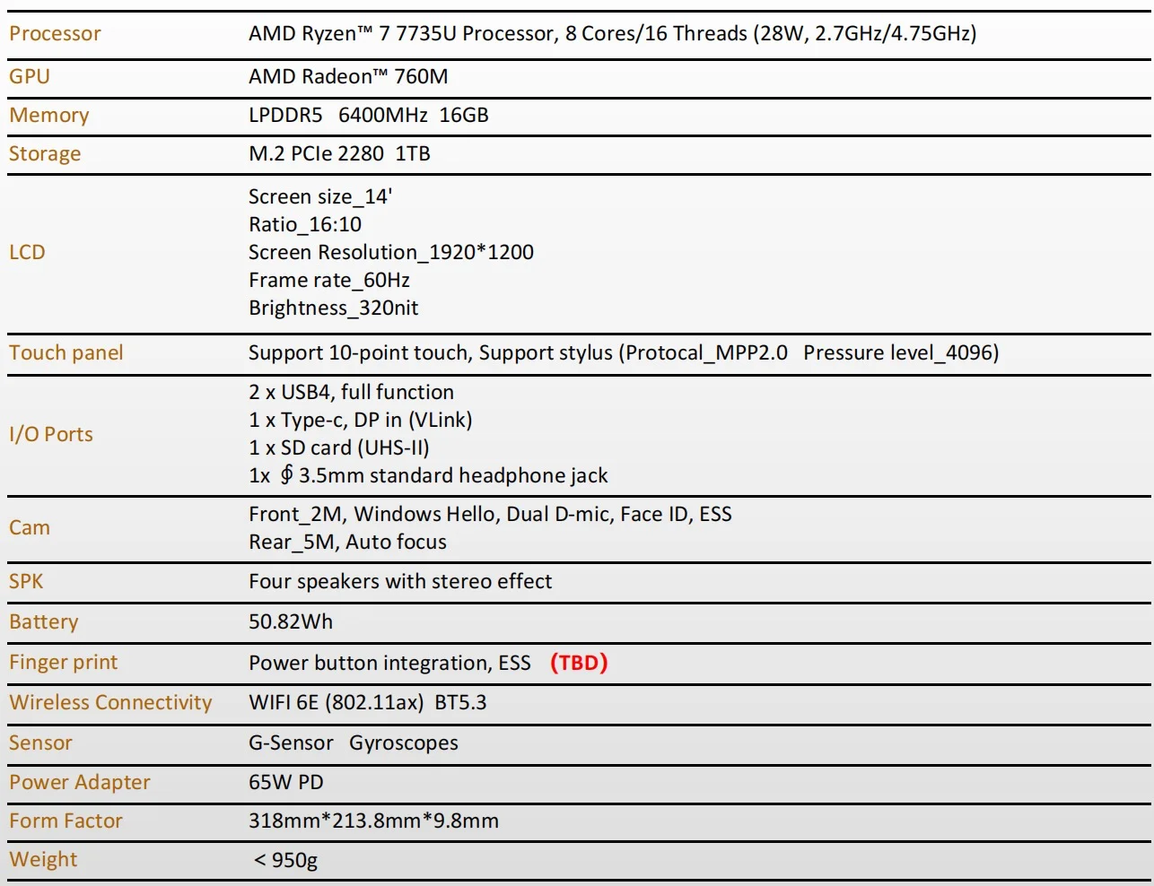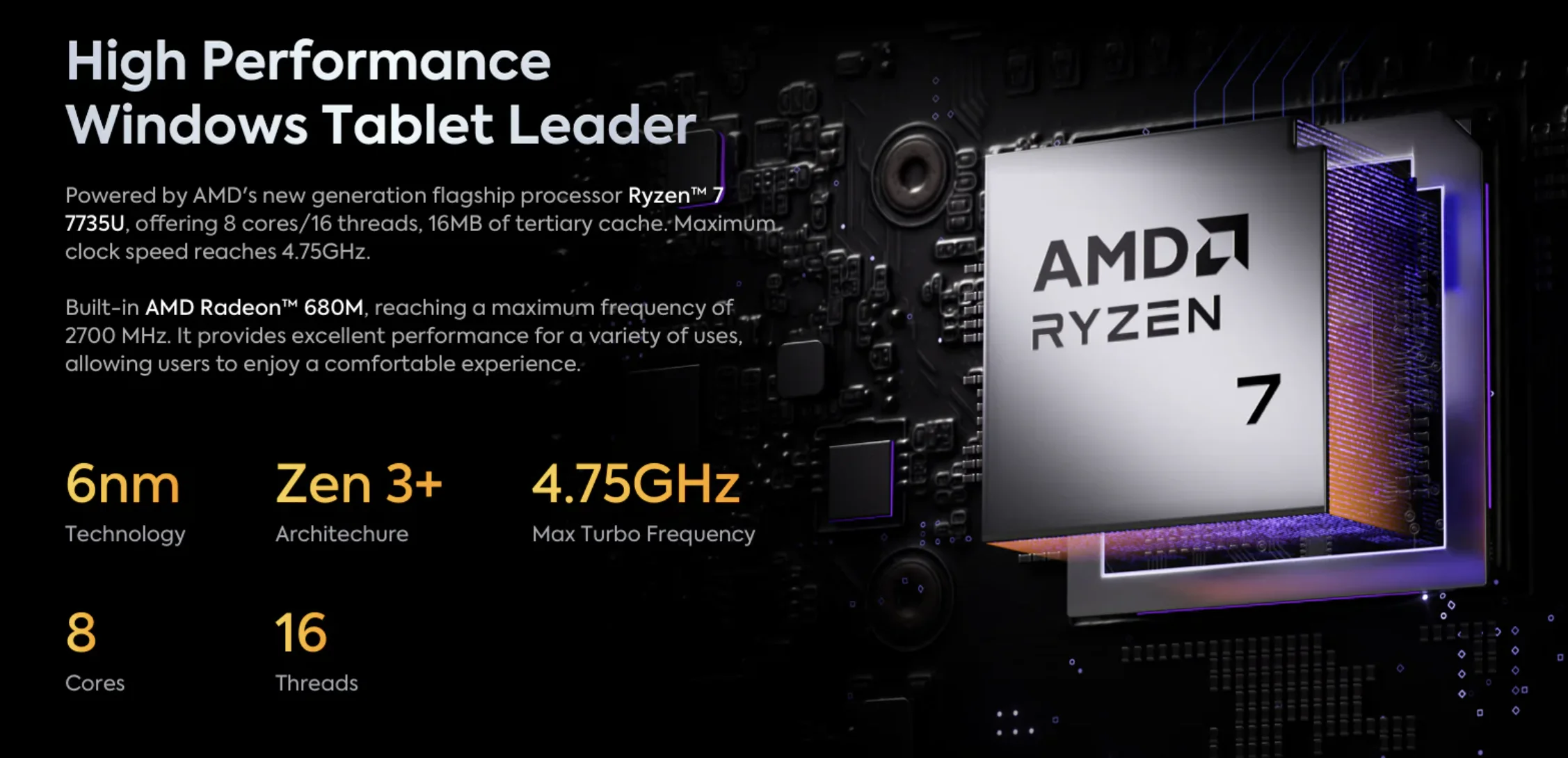 Tableta Windows de alta potencia: tableta Windows 3 en 1 MINISFORUM V3 SE alimentada por el nuevo procesador insignia de AMD, Ryzen 7 7735U, con arquitectura Zen 4 con 8 núcleos y 16 hilos, hasta 4,75 GHz.La última tarjeta gráfica AMD Ryzen Al y Radeon 680M le permite manejar fácilmente diversas aplicaciones y cargas de trabajo emergentes de IA.