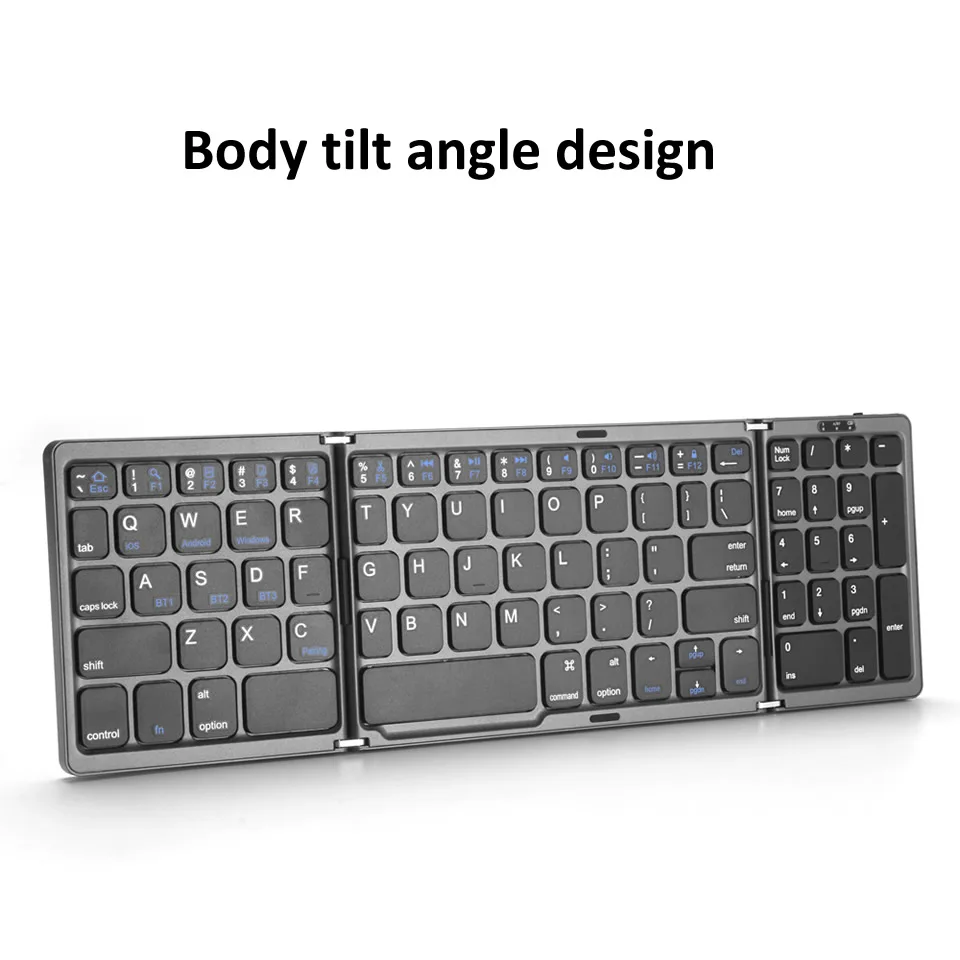 Comprar Miniteclado Bluetooth plegable para teléfono móvil y tableta, teclado numérico inalámbrico, sincronización de 3 dispositivos