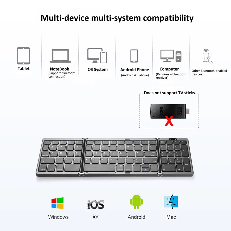 Mini tres teclado plegable Bluetooth teclado de tableta de teléfono móvil con
