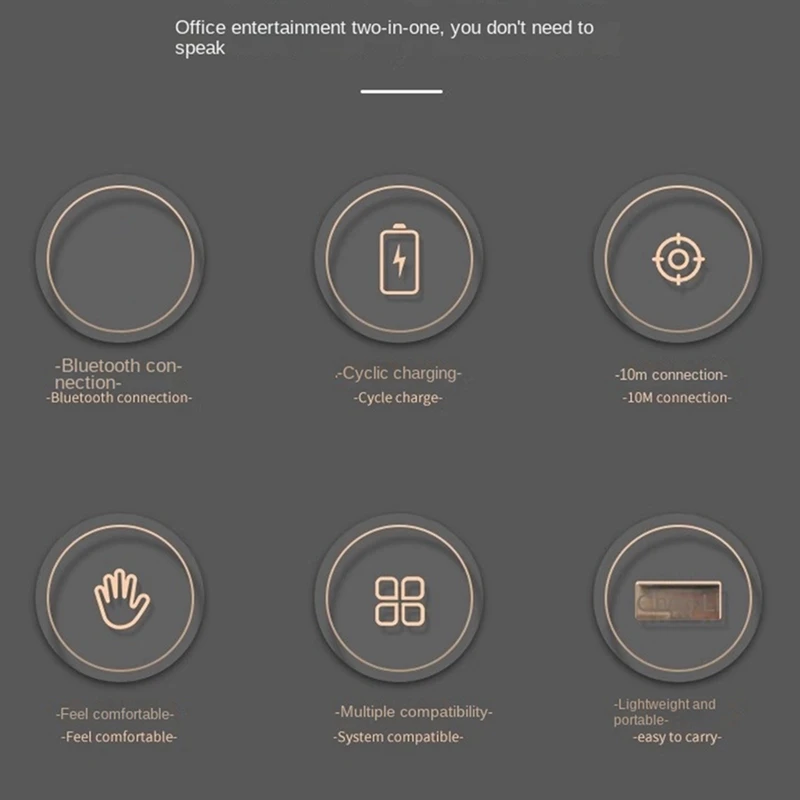 4.Conexión estable: la tecnología Bluetooth avanzada proporciona conectividad inalámbrica con un rango de trabajo de 10 metros.Pero para las computadoras portátiles de escritorio sin función bluetooth, debe conectar un adaptador bluetooth de terceros (no incluido) para instalar el controlador bluetooth para usarlo.