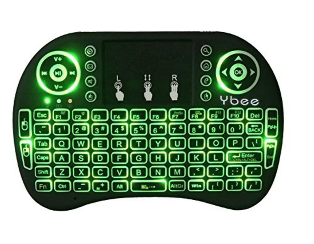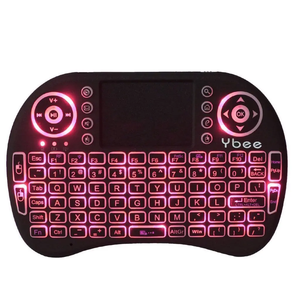 Comprar Miniteclado inalámbrico I8, 2,4 GHz, panel táctil de 3 colores, portátil, retroiluminado, para Android TV BOX