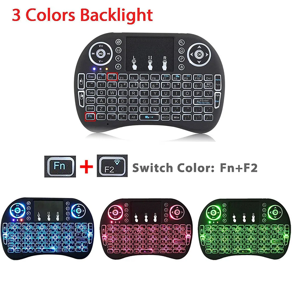 Comprar Miniteclado inalámbrico I8, 2,4 GHz, panel táctil de 3 colores, portátil, retroiluminado, para Android TV BOX