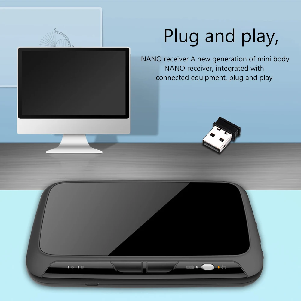 1. Multifuncional:Panel táctil inalámbrico de 2,4 GHz y Mini teclado QWERTY con adaptador de interfaz USB. Moderno, portátil y elegante. Puedes usarlo para correo electrónico, chat, control remoto, entrada de mensajes y juegos.
