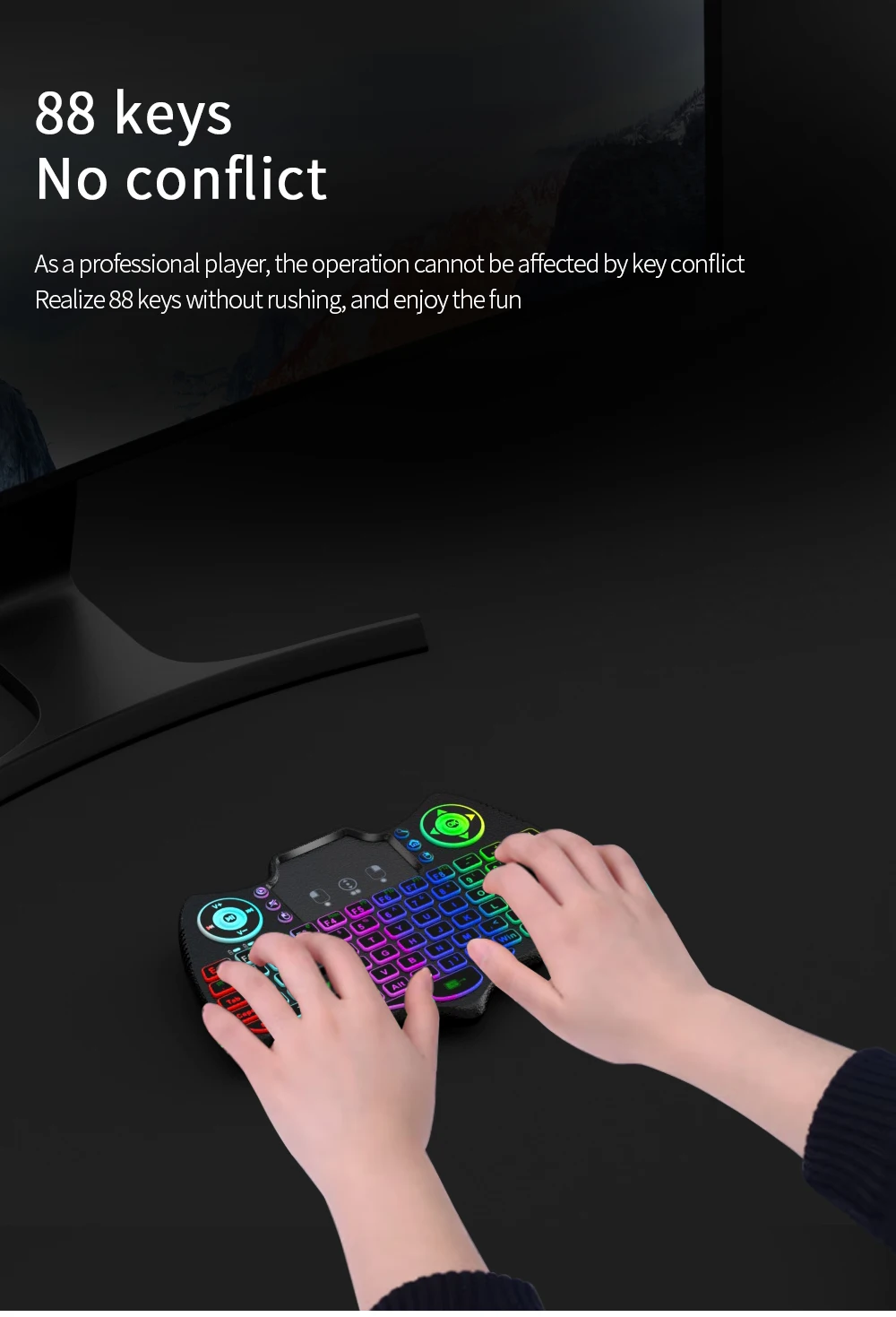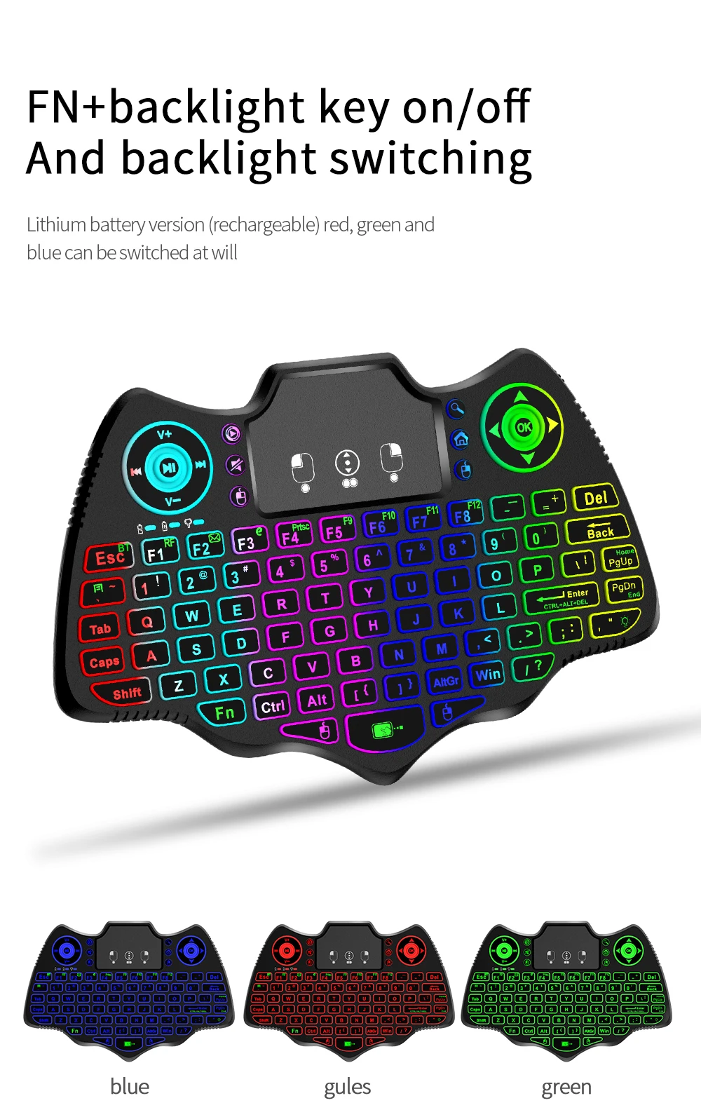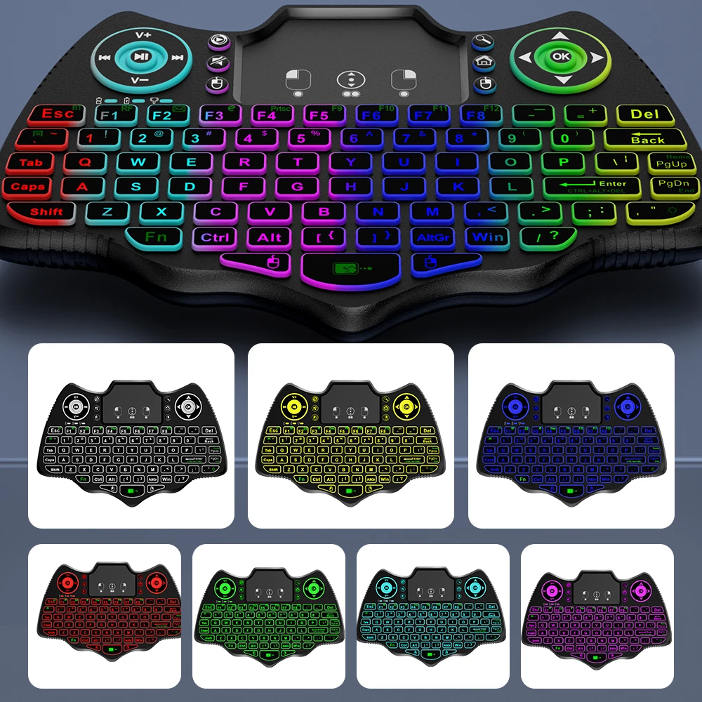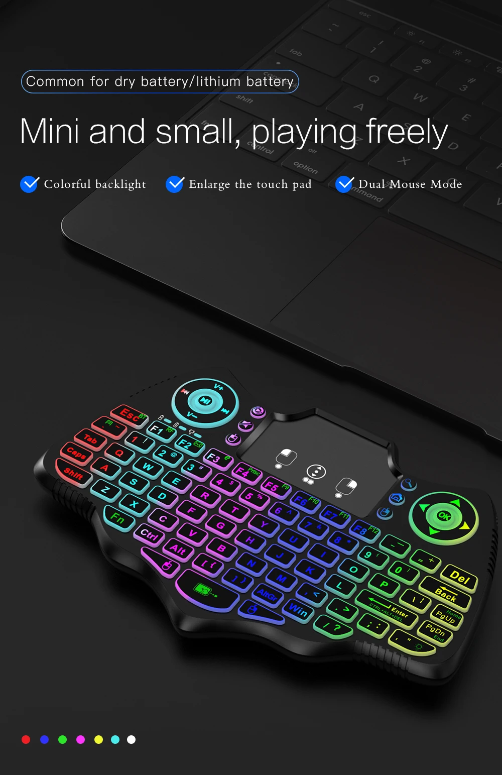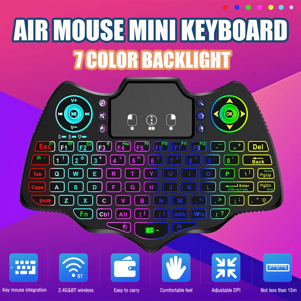 Comprar Miniteclado inalámbrico V18, periférico con pantalla táctil de 2,4G, BT, 7 colores, retroiluminado, francés, español, ruso, Air Mouse, regalo para Android TV Box