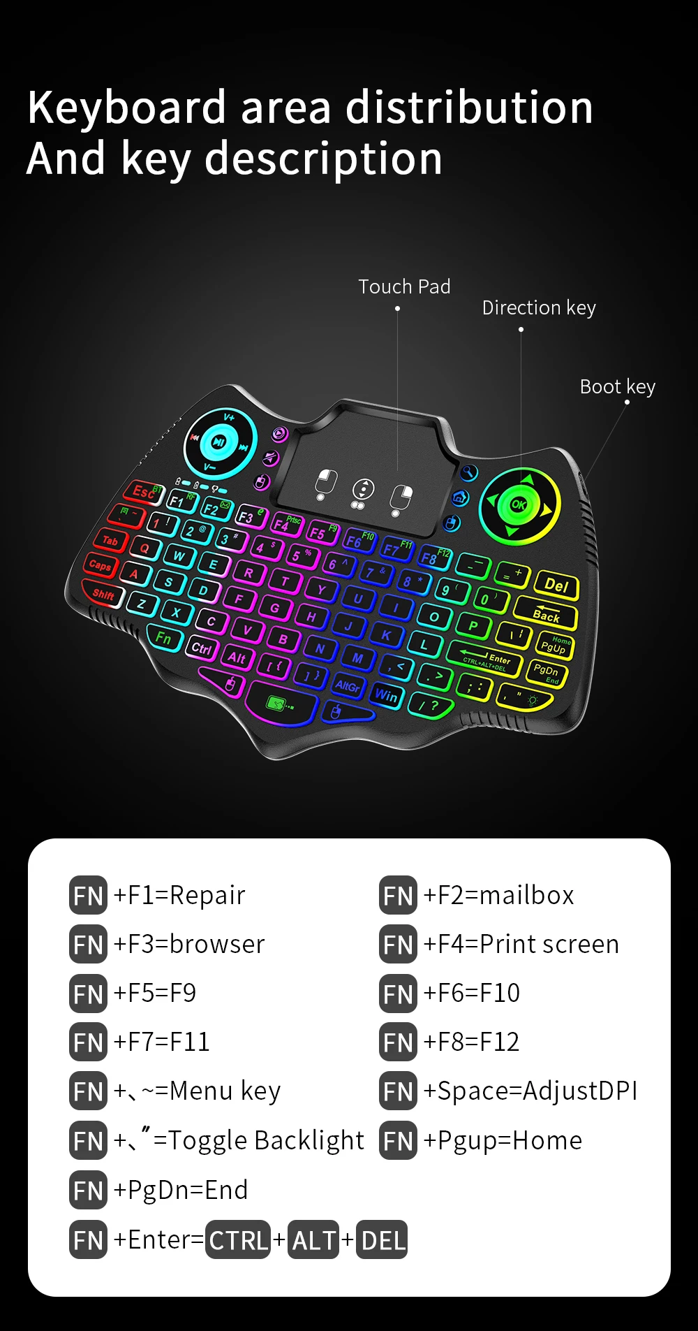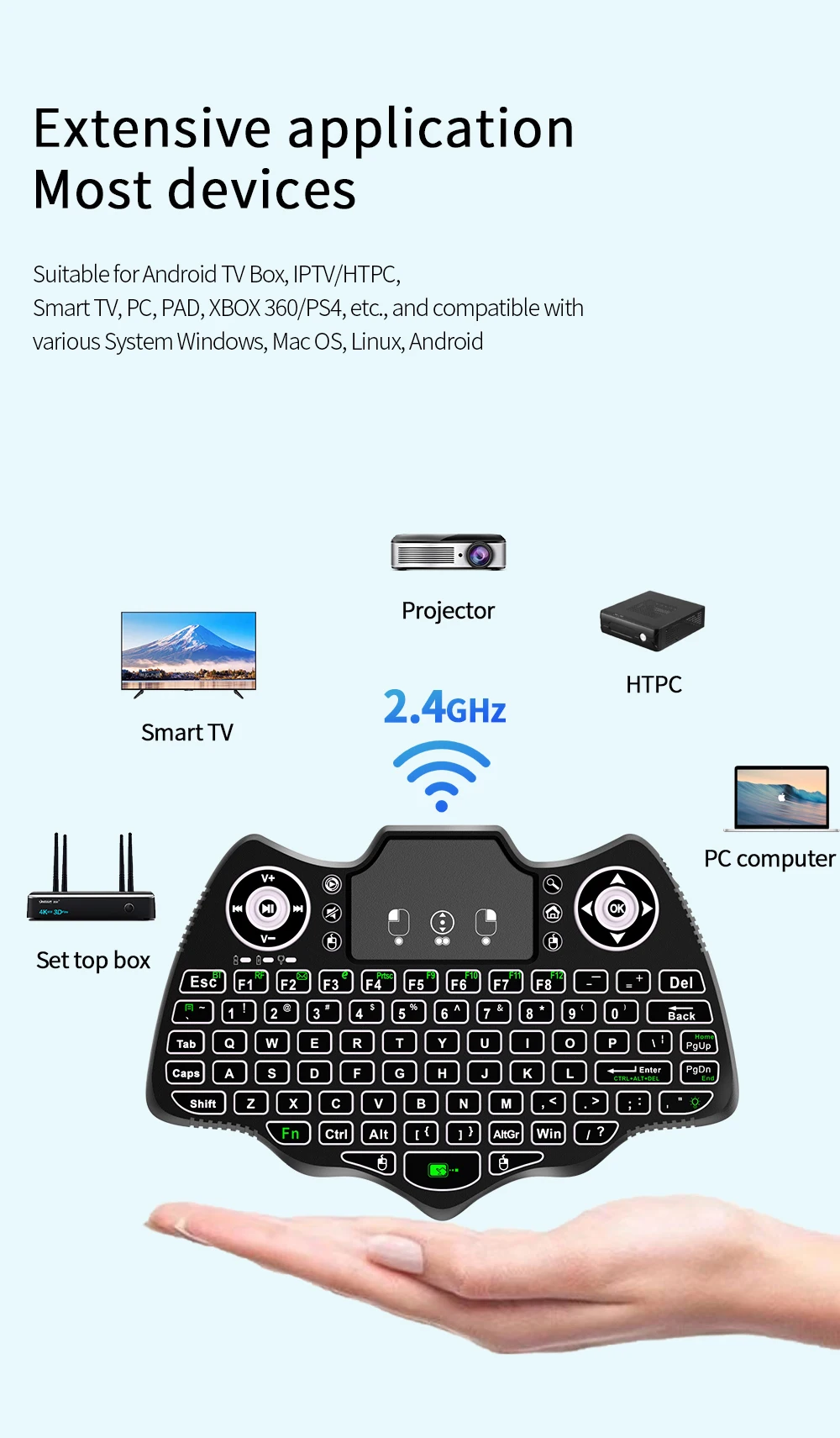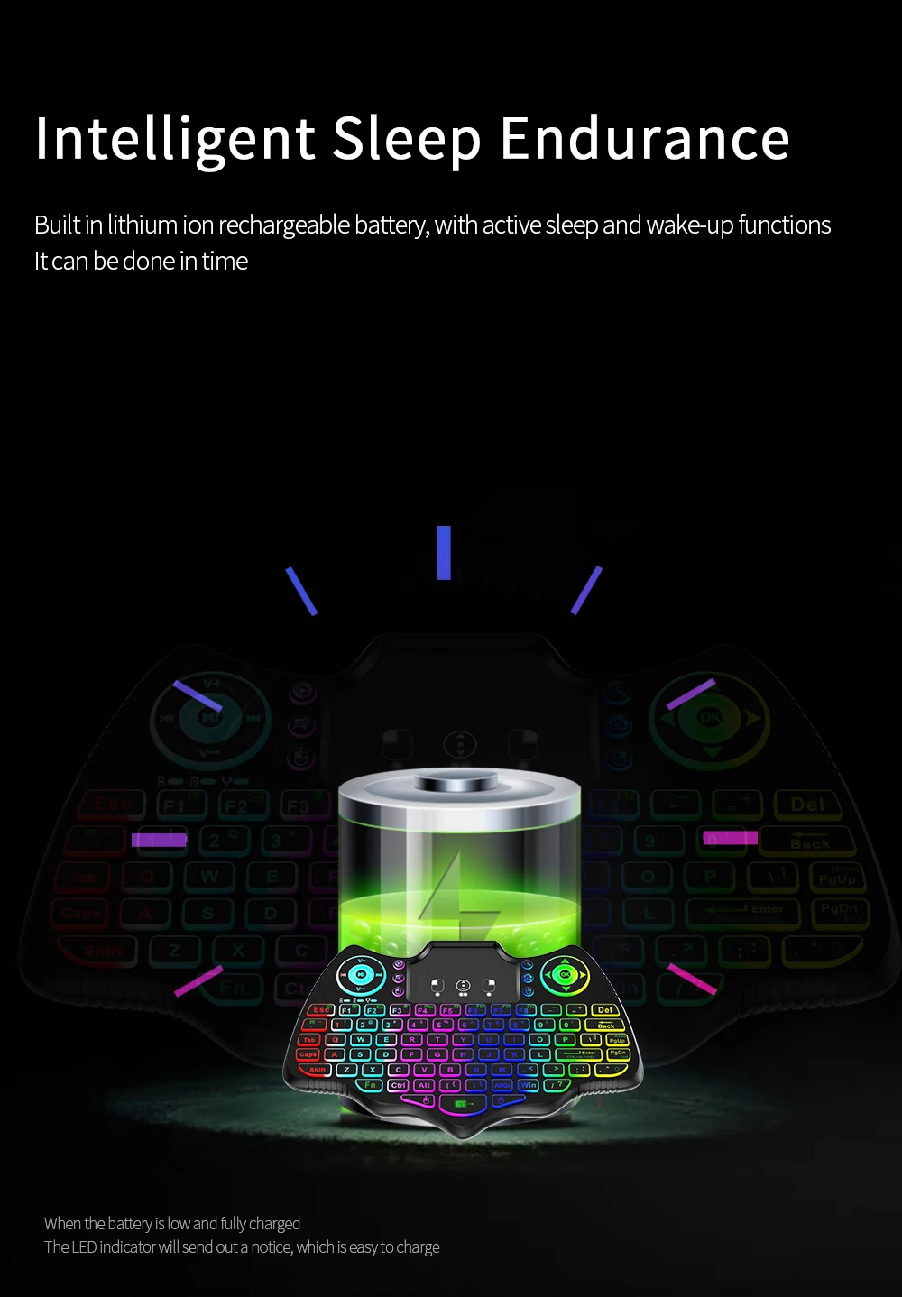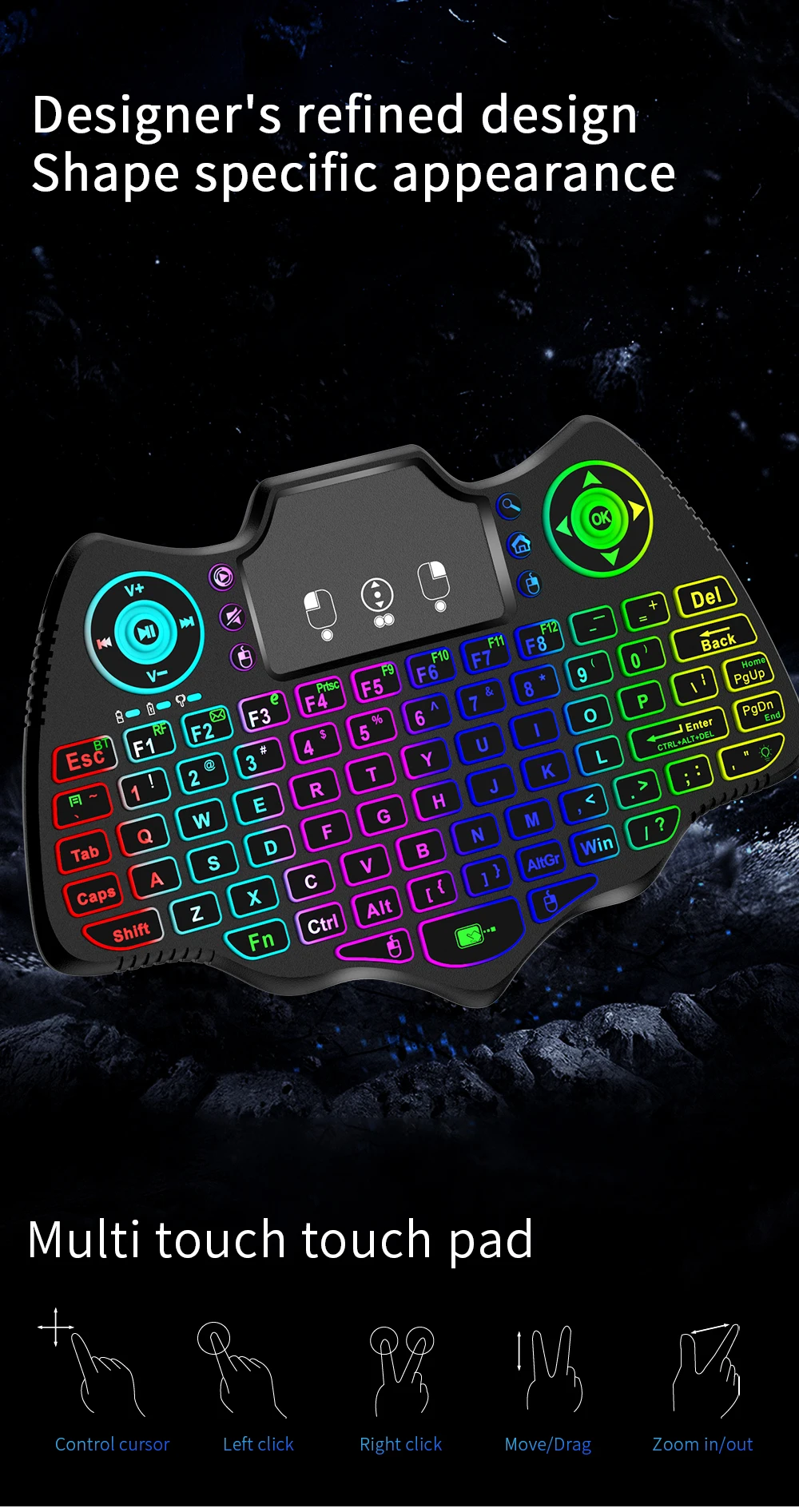 Comprar Miniteclado inalámbrico V18, periférico con pantalla táctil de 2,4G, BT, 7 colores, retroiluminado, francés, español, ruso, Air Mouse, regalo para Android TV Box