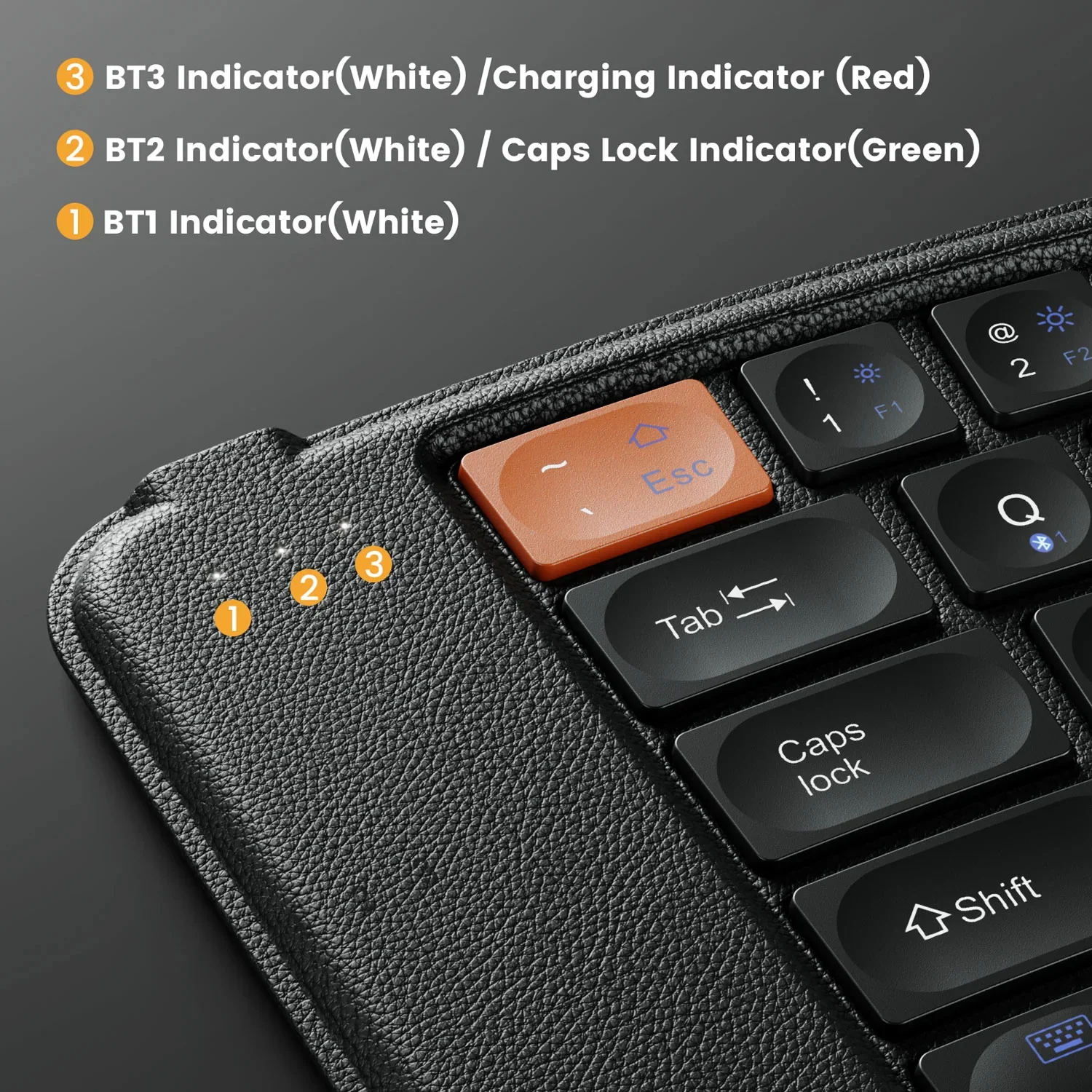 3. Mantenga presionado Luego "Fn + BT1" Durante 3-5 segundos, cuando el indicador PRIMERO parpadee rápidamente, el teclado entra en modo de emparejamiento;