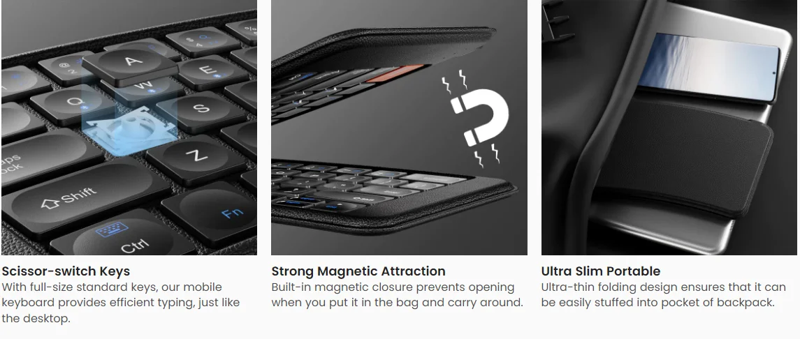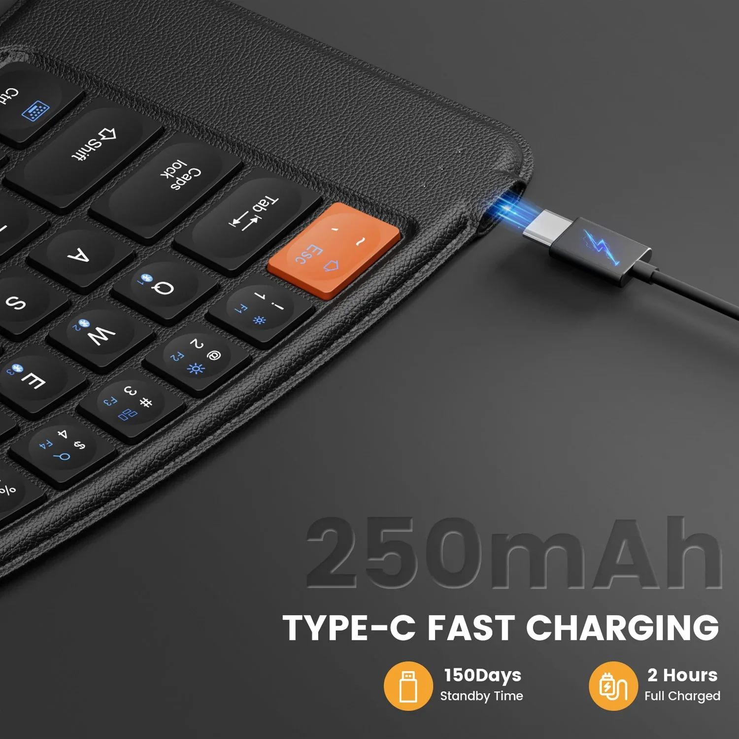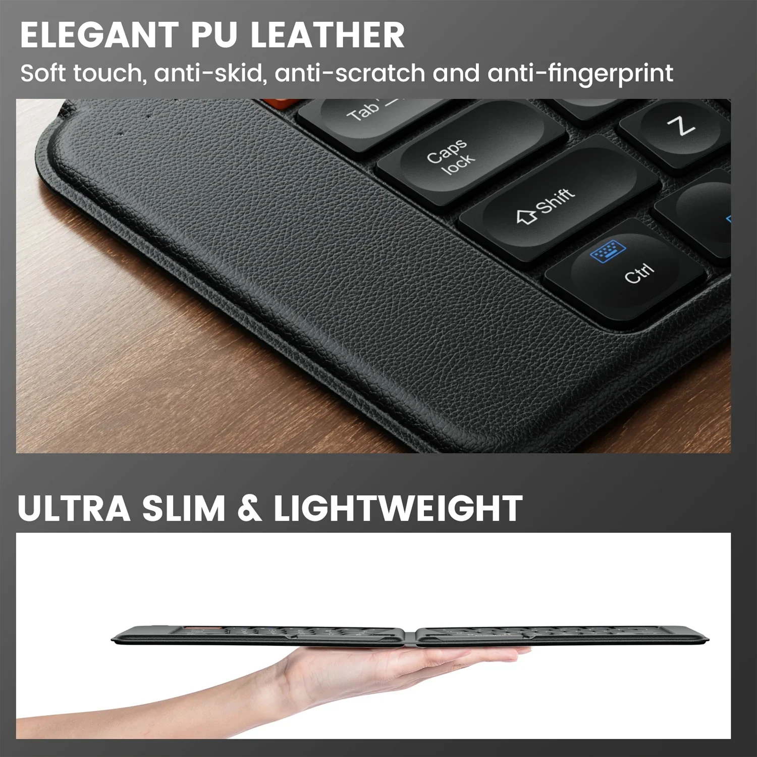 El teclado delgado de bolsillo se puede plegar en su maletín o mochila para llevarlo. Aspecto Delicado y elegante con cuero PU resistente al desgaste, combinará perfectamente con su tableta iPad o portátil. Elegante y duradero, puede ser un regalo perfecto para cualquiera.