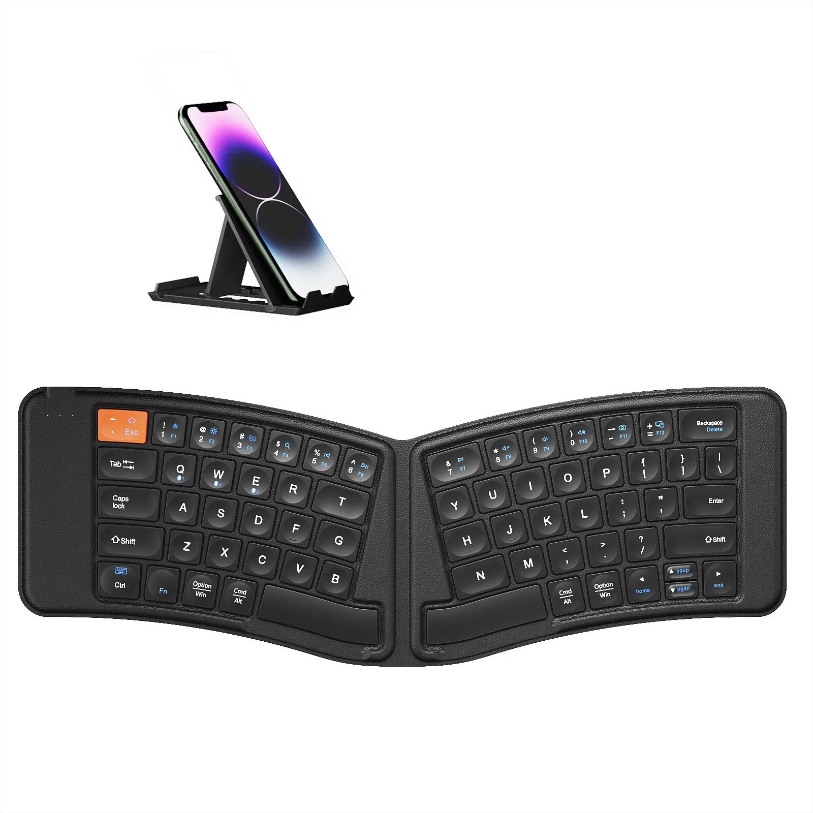 Comprar Miniteclado plegable inalámbrico, recargable por USB-C, ultrafino, dividido, ergonómico, portátil, con soporte para teléfono