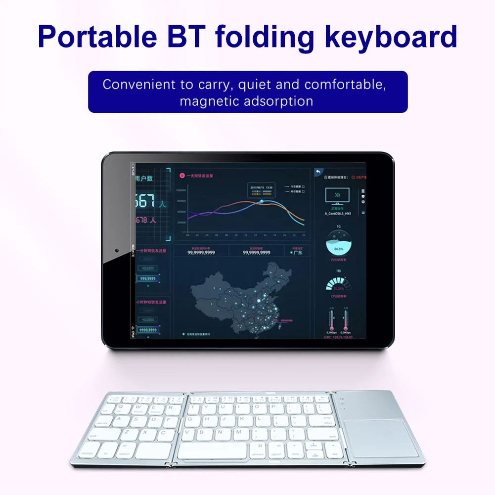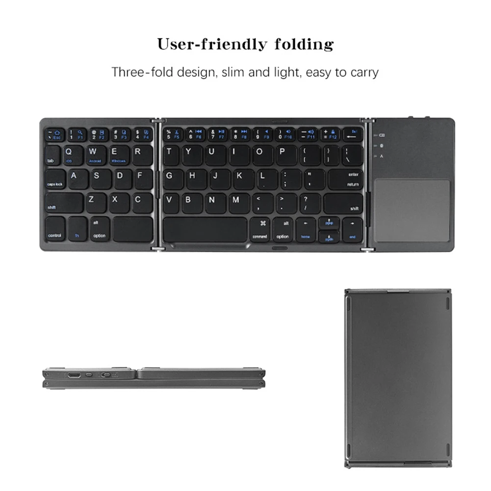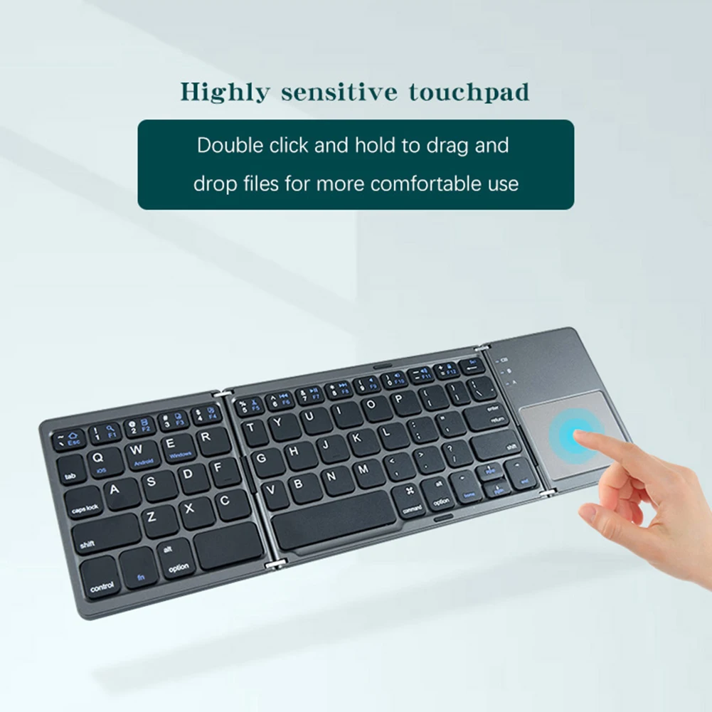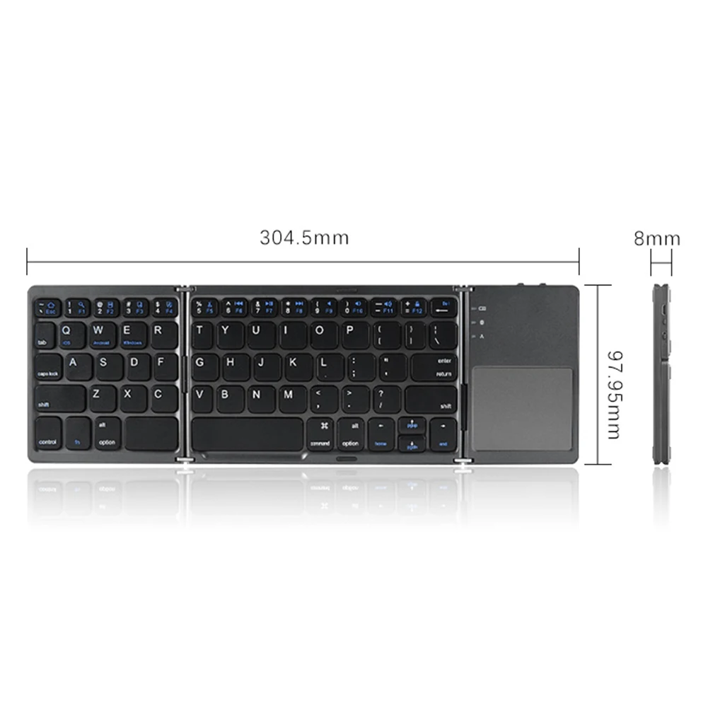 Comprar Miniteclado portátil plegable con Bluetooth, teclado inalámbrico con panel táctil para IOS, Android, Windows, ipad, tableta y PC