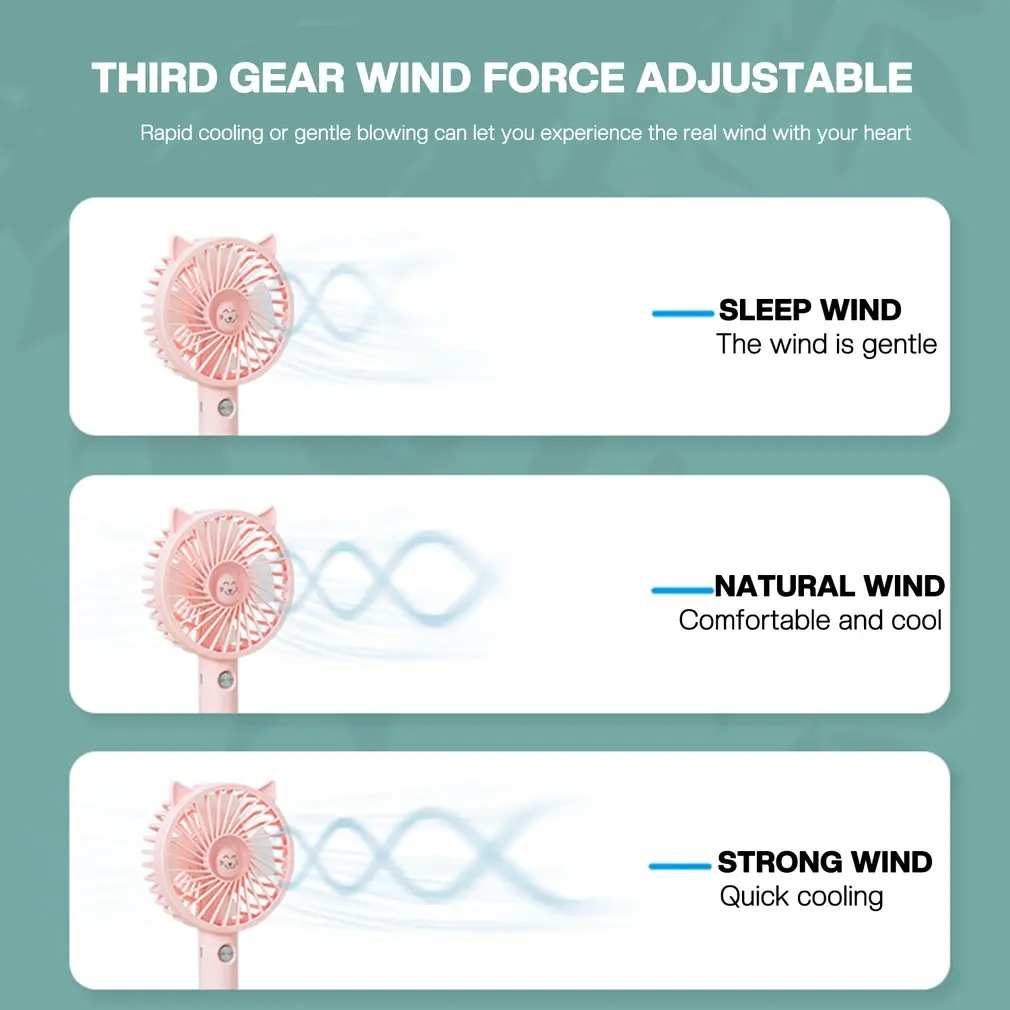 4. Portabilidad: el ventilador es de tamaño pequeño, ligero y muy cómodo de llevar. Cuando salga, puede llevarlo en su bolso, especialmente adecuado para viajes de verano o deportes al aire libre.