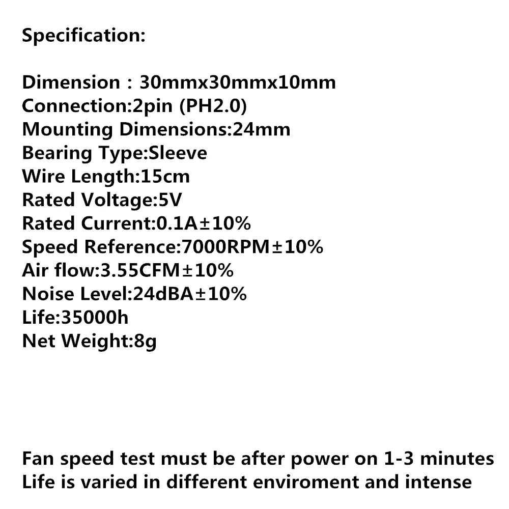 La prueba de velocidad del ventilador debe ser después de encender 1-3 minutos