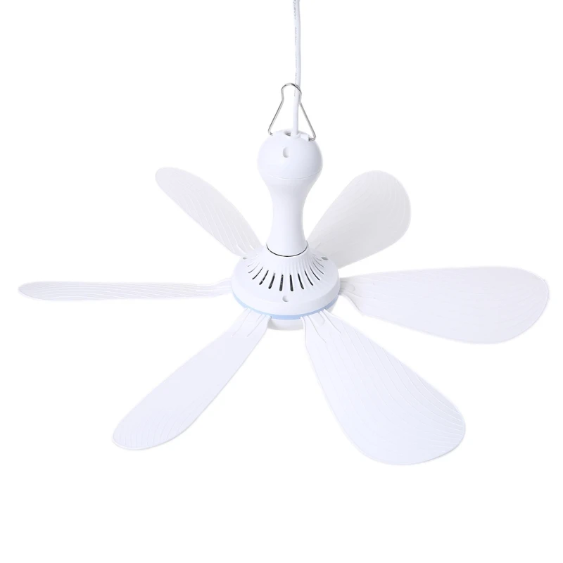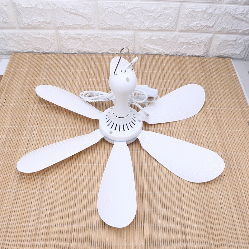 Pequeño ventilador de techo ideal para el verano caluroso y los días sin viento, también para cama o tiendas de campaña.