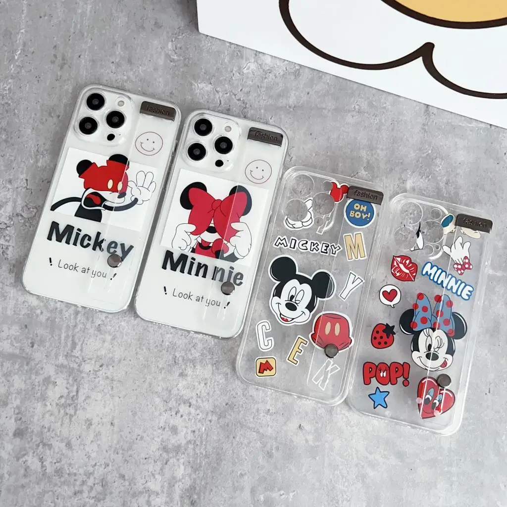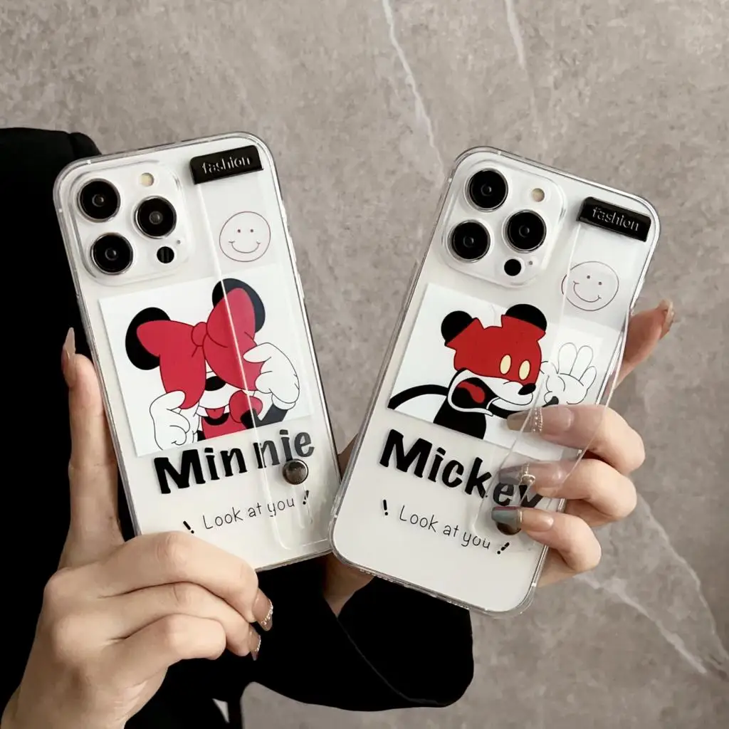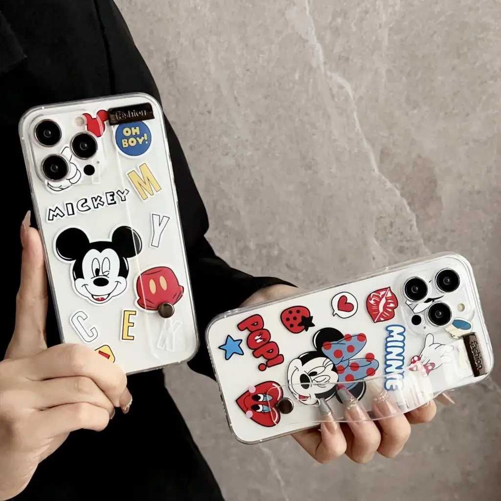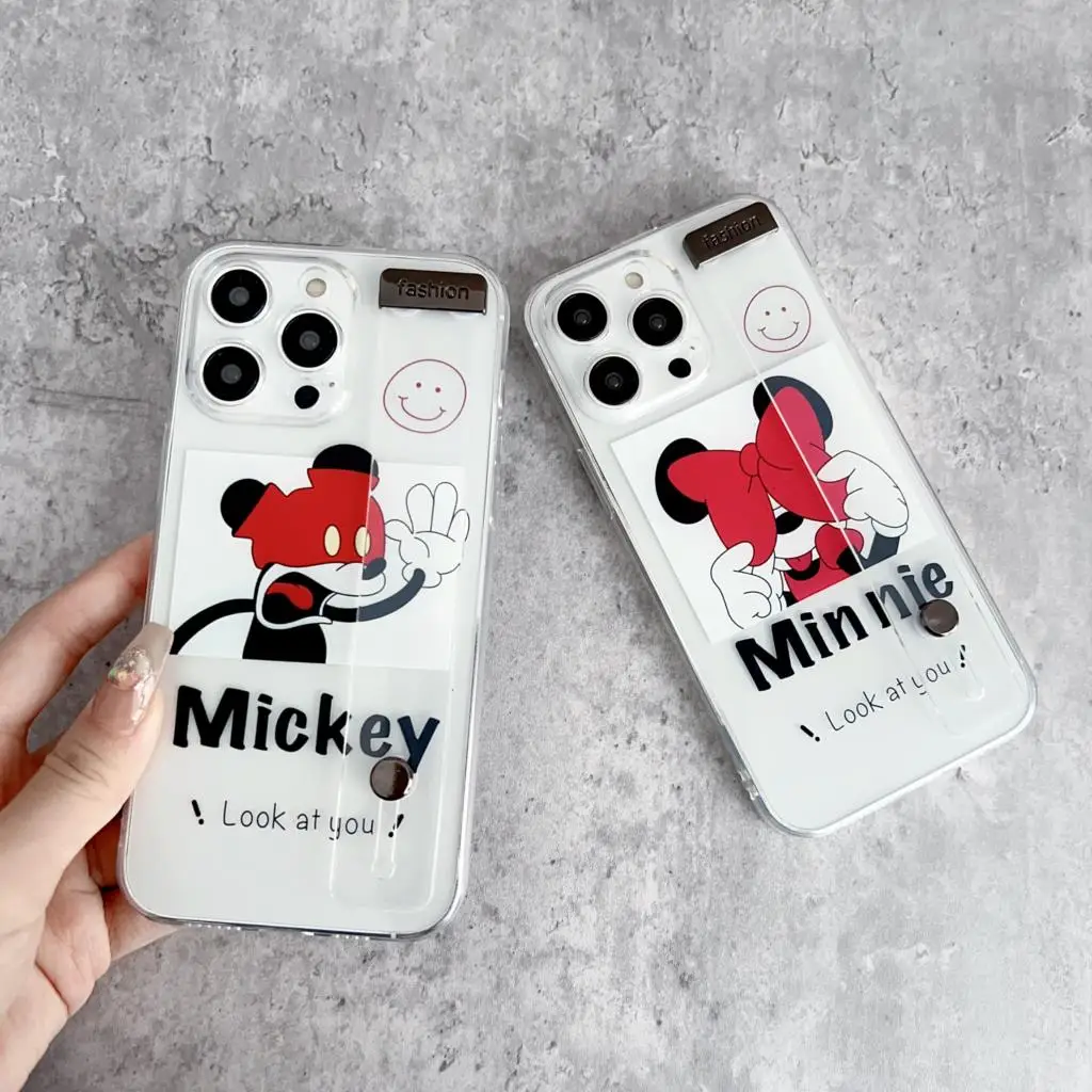 Minnie Mickey For iPhone 15 14 13 12 11 Pro Xs Max Xs XR 7 8 6 Plus SE 2020 Case Wrist Strap Holder