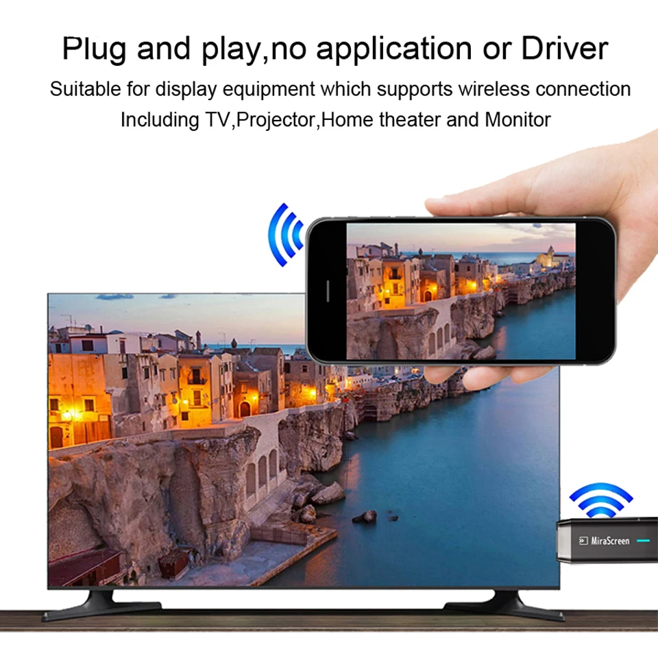 Receptor de TV de doble banda 5G/2,4G 1080P inalámbrico Miracast DLNA AirPlay HD Media TV Dongle Wifi Display Mirroring Screen TV Stick