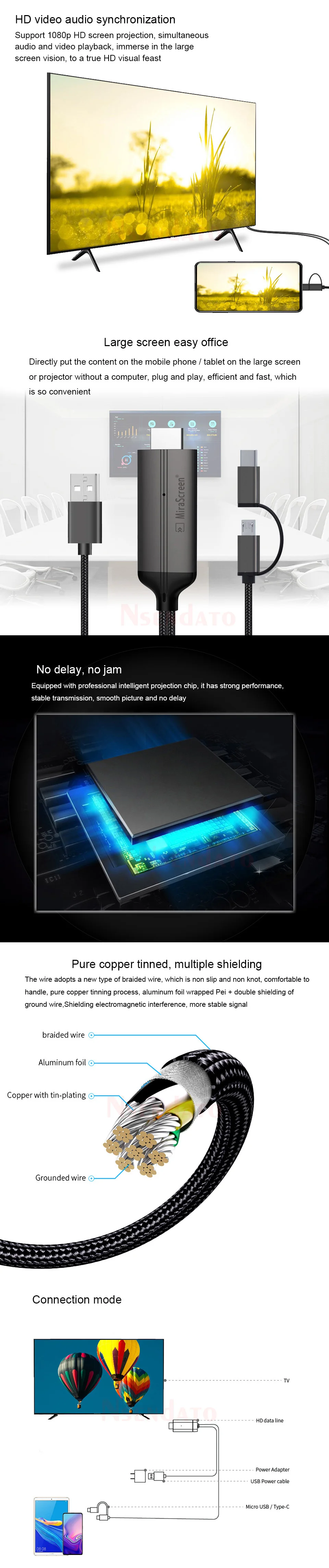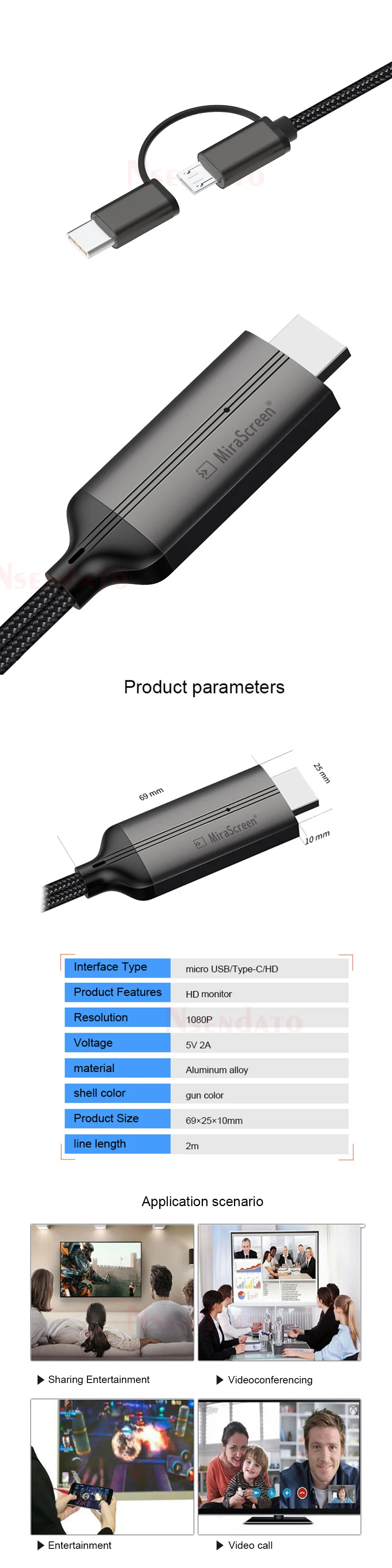 Mirascreen LD36 Wired HD Micro USB Type C HD TV Stick For andriod Smartphone Sharing Mirroring screen to TV HDTV Monitor Adapter