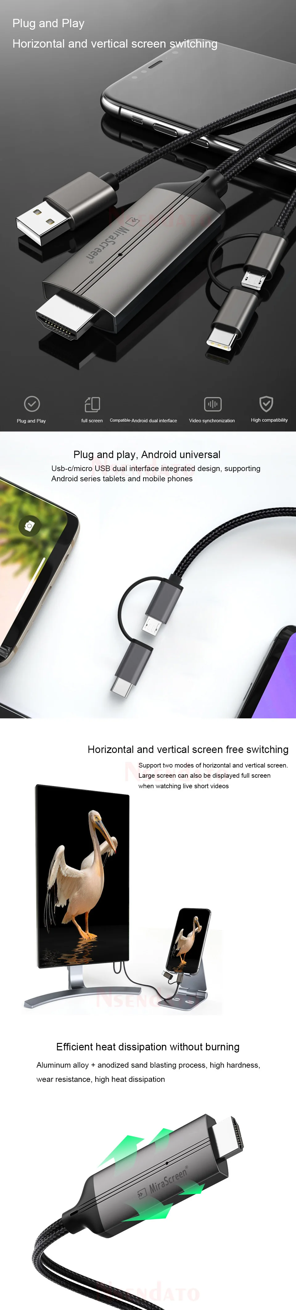 Comprar Mirascreen-Adaptador de pantalla con cable LD36, Micro USB tipo C, HD TV Stick para teléfono inteligente Android, compartir pantalla de espejo a TV HDTV