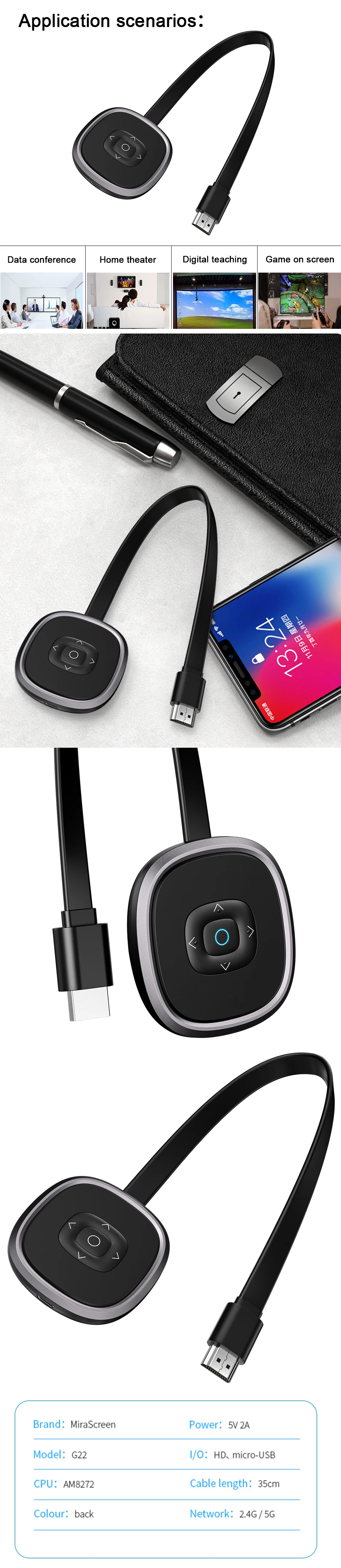 Mirascreen-receptor inalámbrico G22 5G 4K para proyector de teléfono HDTV, Dongle con pantalla HD, Wifi, Miracast, Airplay, DLNA