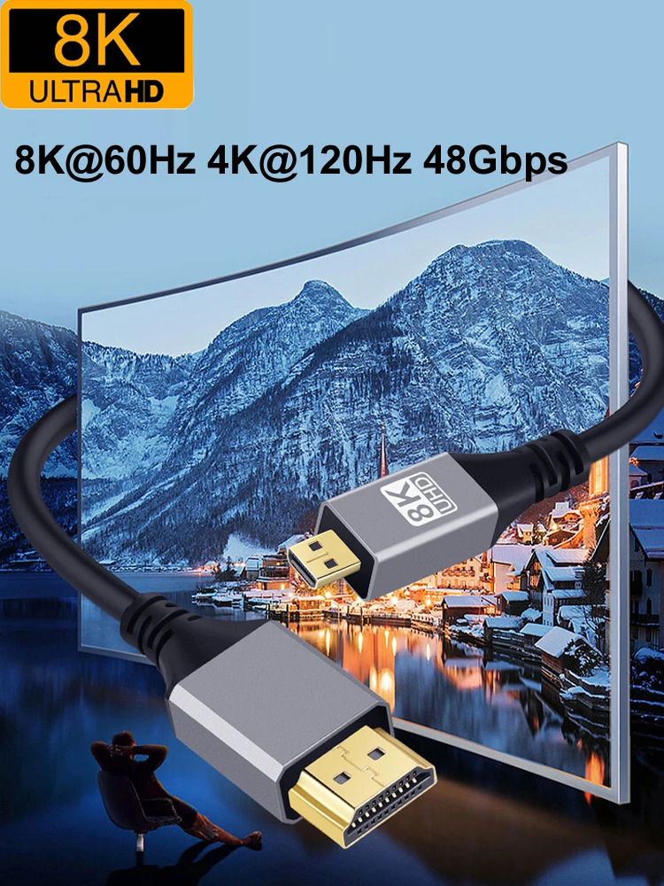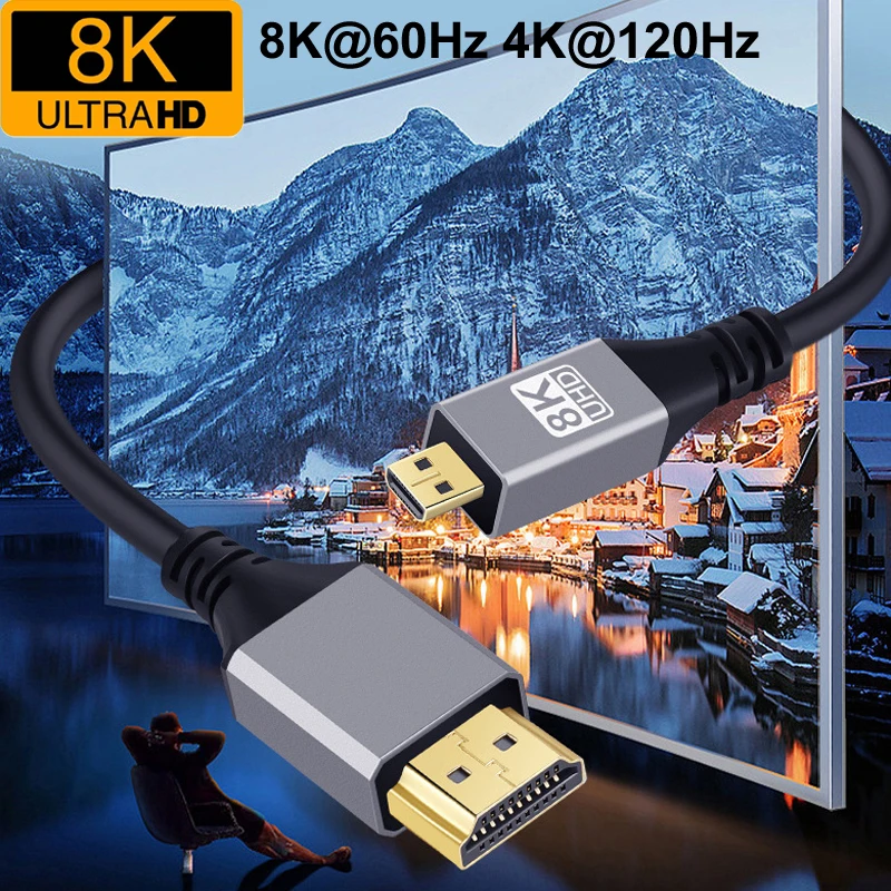 Mircohdmi Micro HDMI-Compatible V2.1 Cable 8K @ 60Hz 4K @ 120Hz 48Gbps Ultra alta velocidad HDR para proyector de computadora portátil PS4 PS5 HDTV Cable 1m/2m/3m/5M