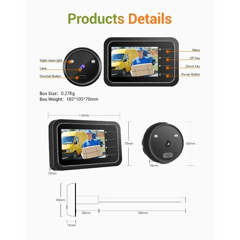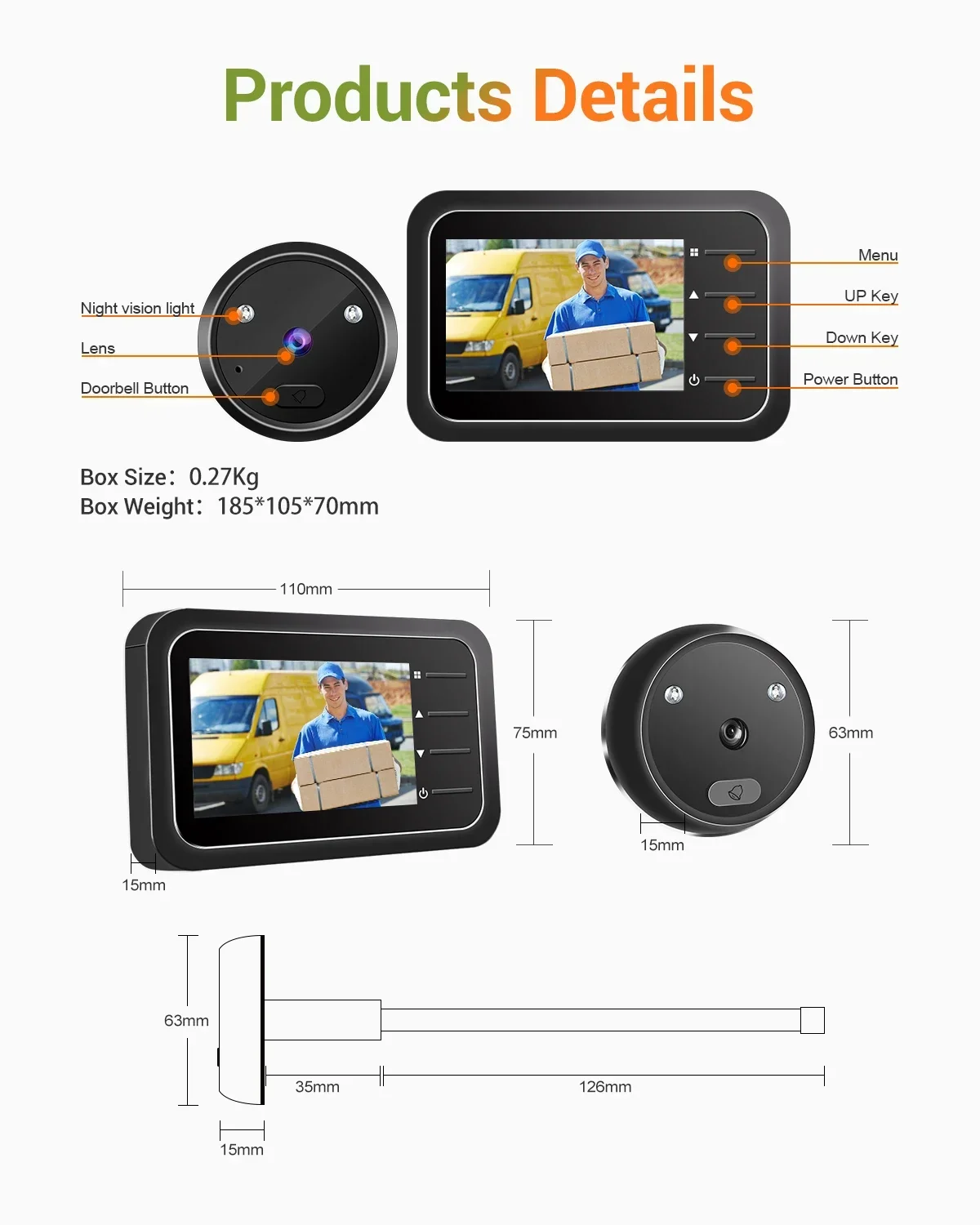 2,4 pulgadas Video timbre mirilla timbre Cámara visión nocturna Video ojo puerta timbre hogar Seguridad Protección mirilla visor