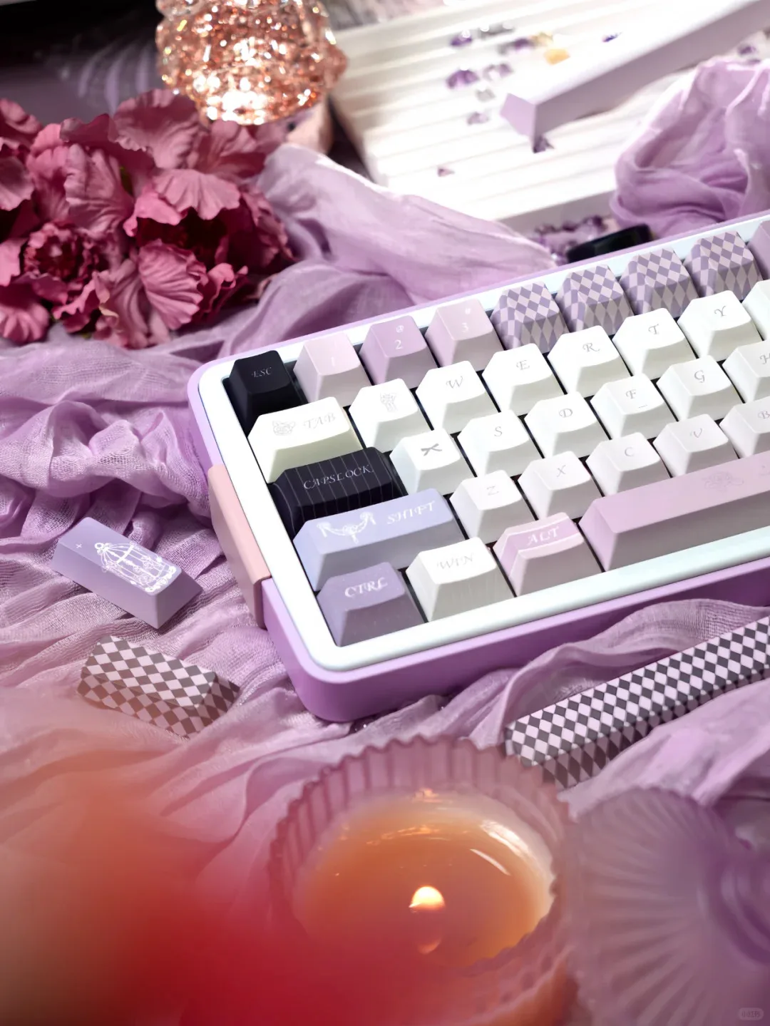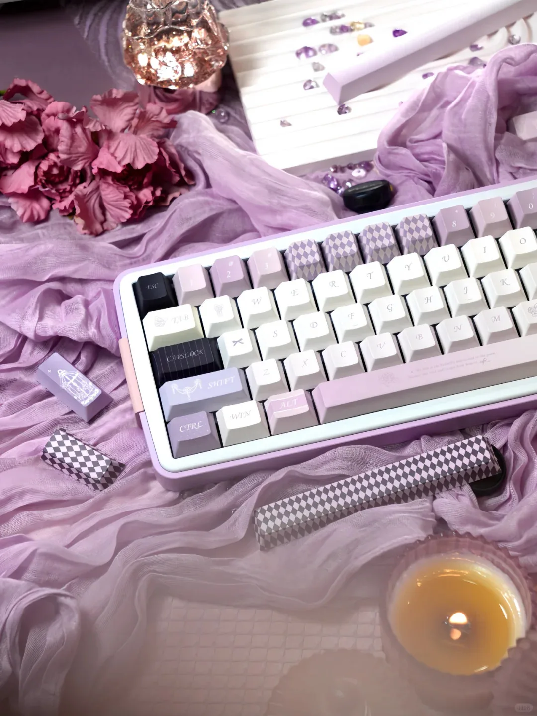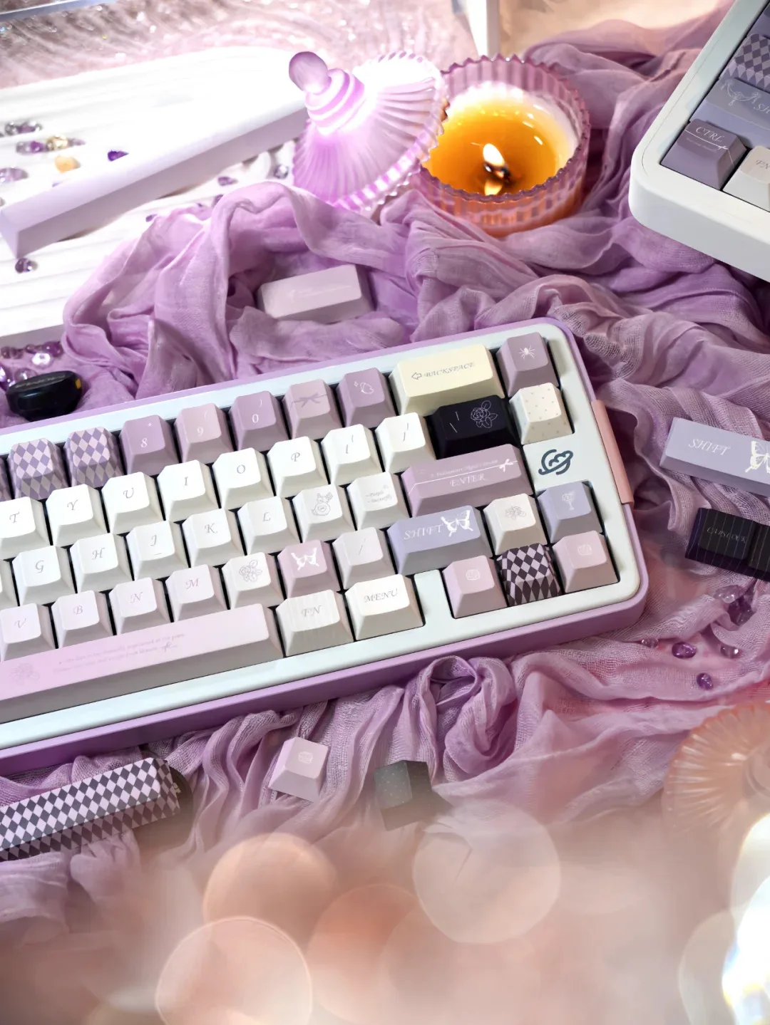 Comprar Mist Fairy Tale Keycap Cherry Pbt elegante romántico púrpura Alice diseño Keycap 2,25/2,75/7U barra espacial alrededor de 137 teclas