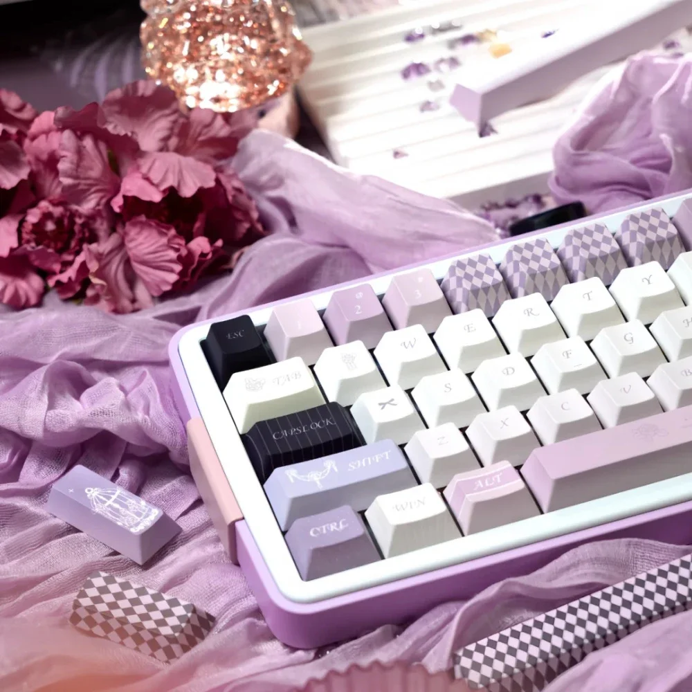 Comprar Mist Fairy Tale Keycap Cherry Pbt elegante romántico púrpura Alice diseño Keycap 2,25/2,75/7U barra espacial alrededor de 137 teclas
